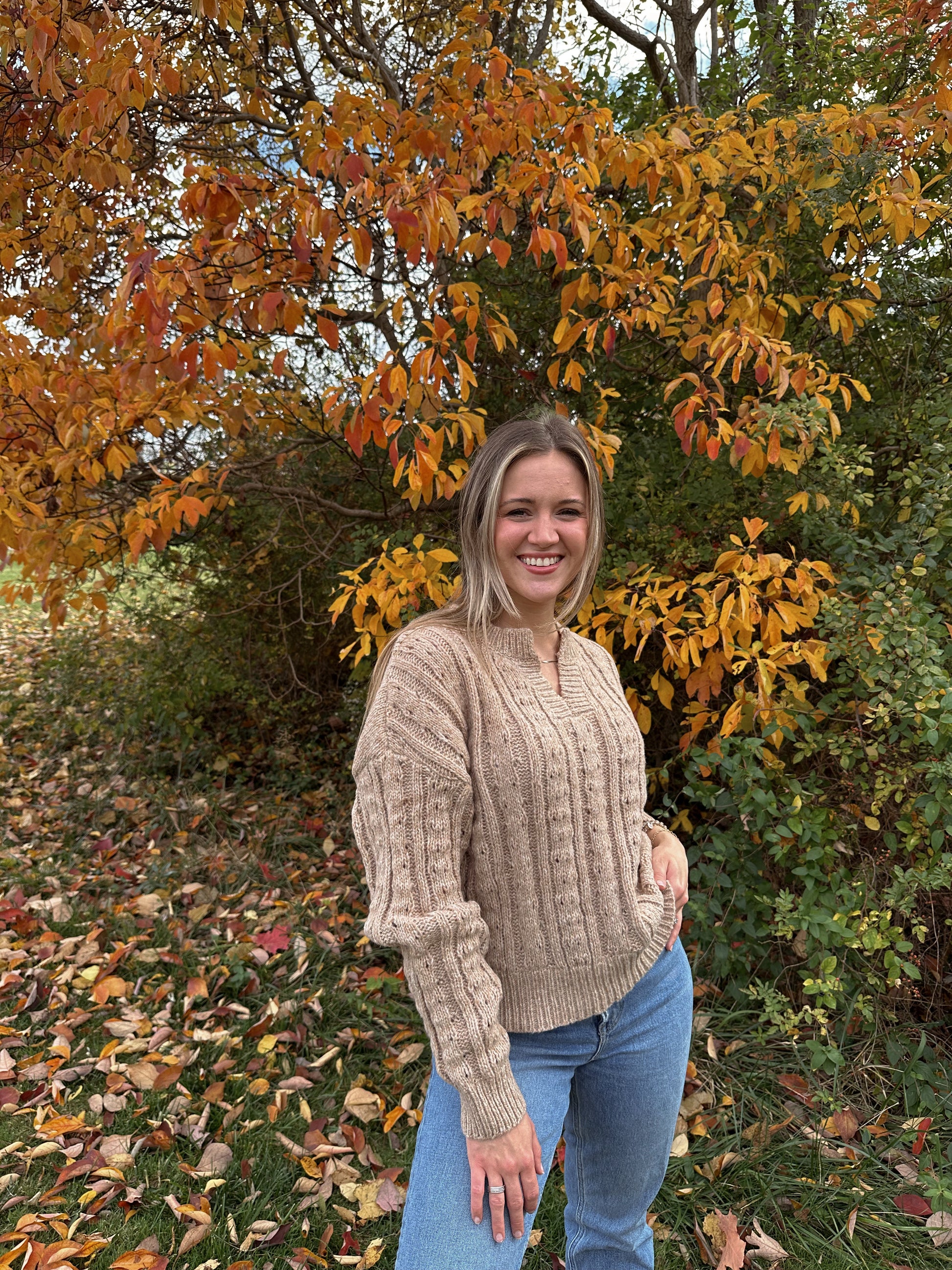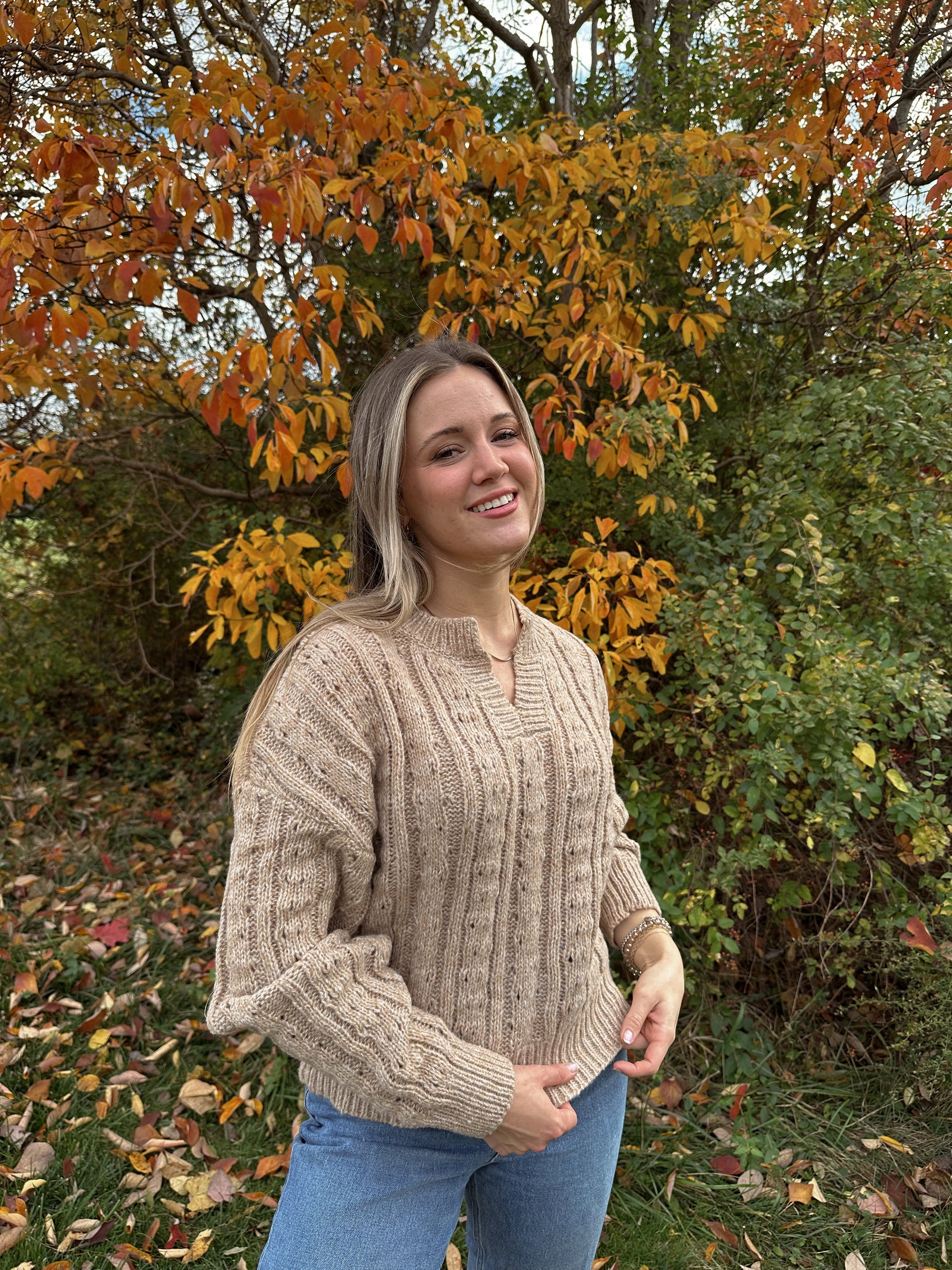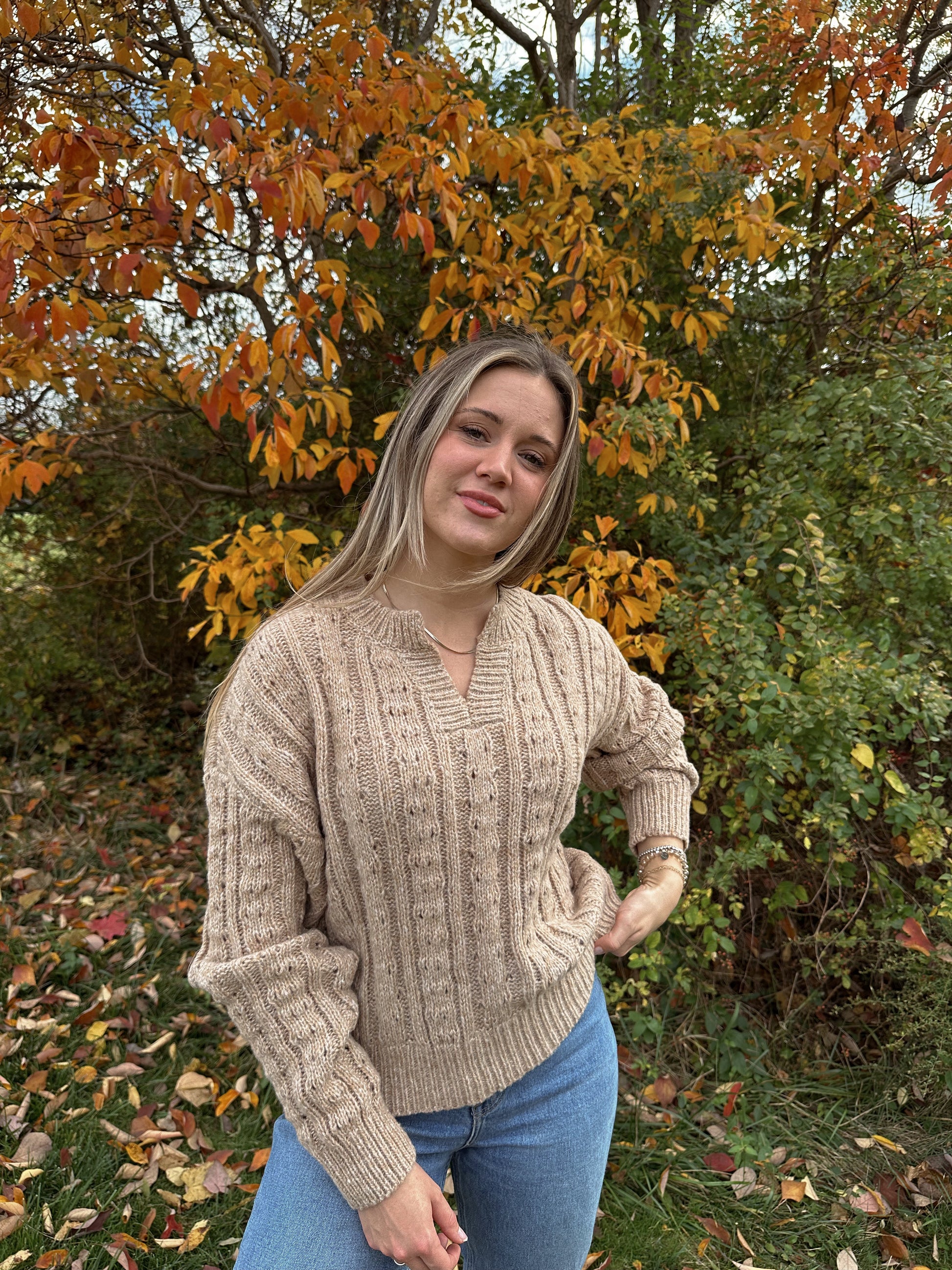 The Ava Cable Knit Sweater adds a classic touch to your wardrobe with its cozy and luxurious fabric. The notch neckline gives it a classic aesthetic while the cable knit design gives it a timeless look.