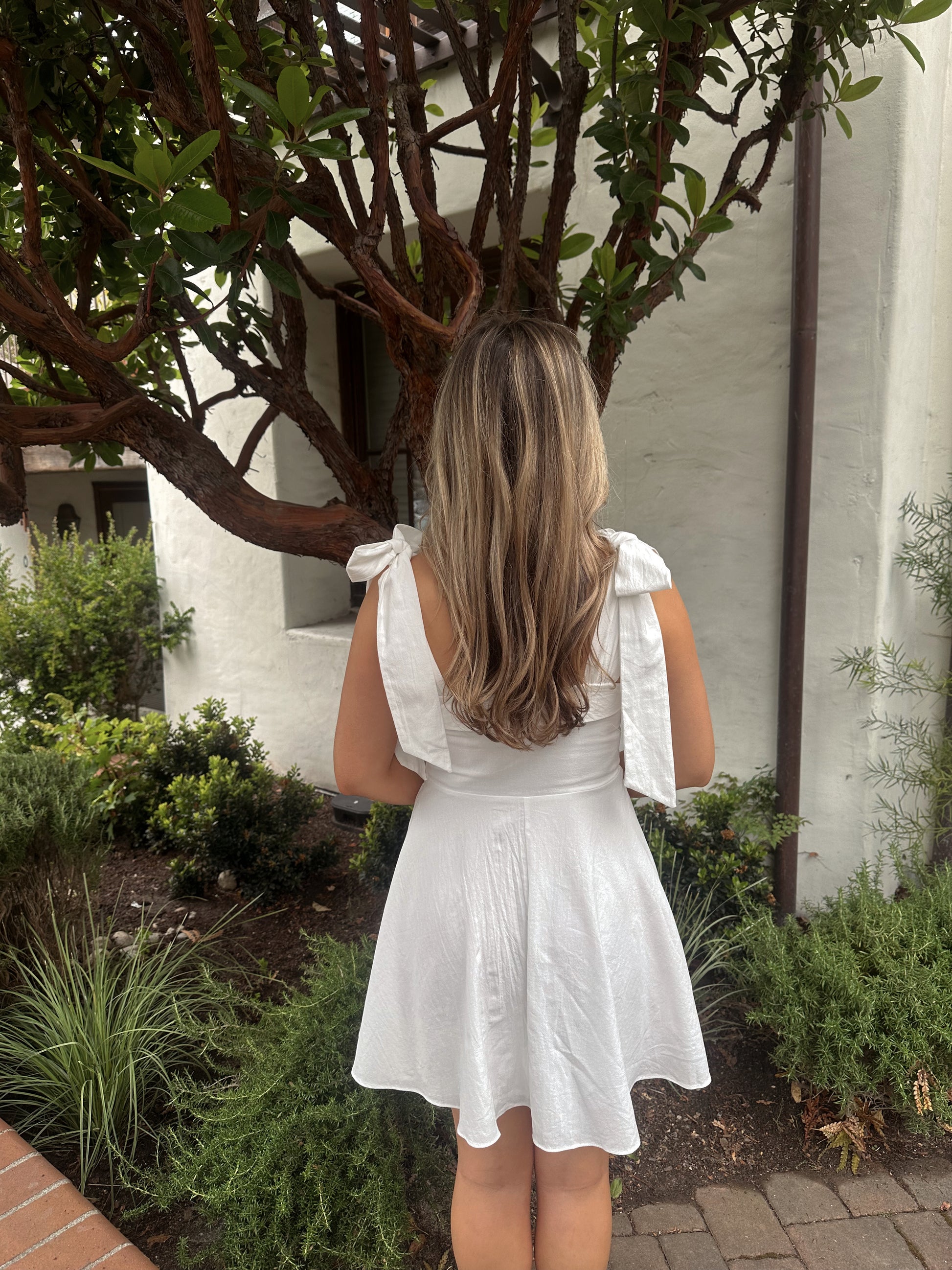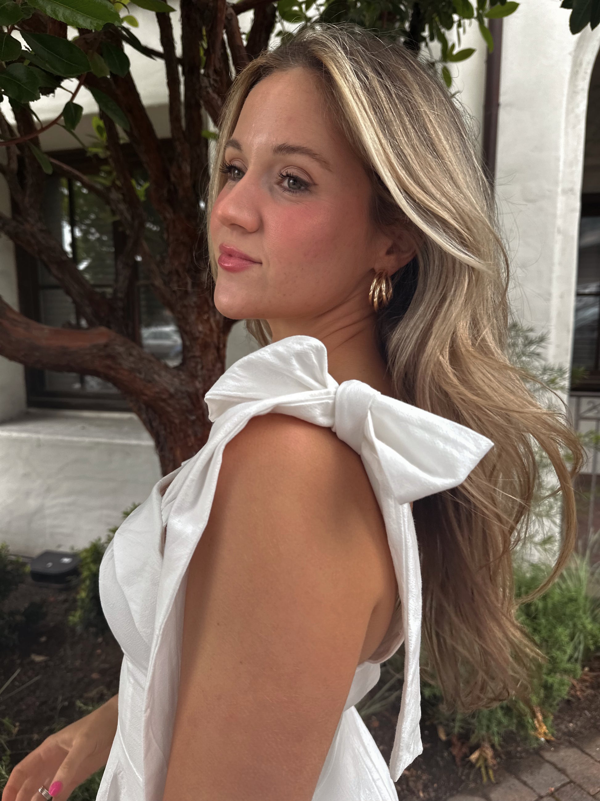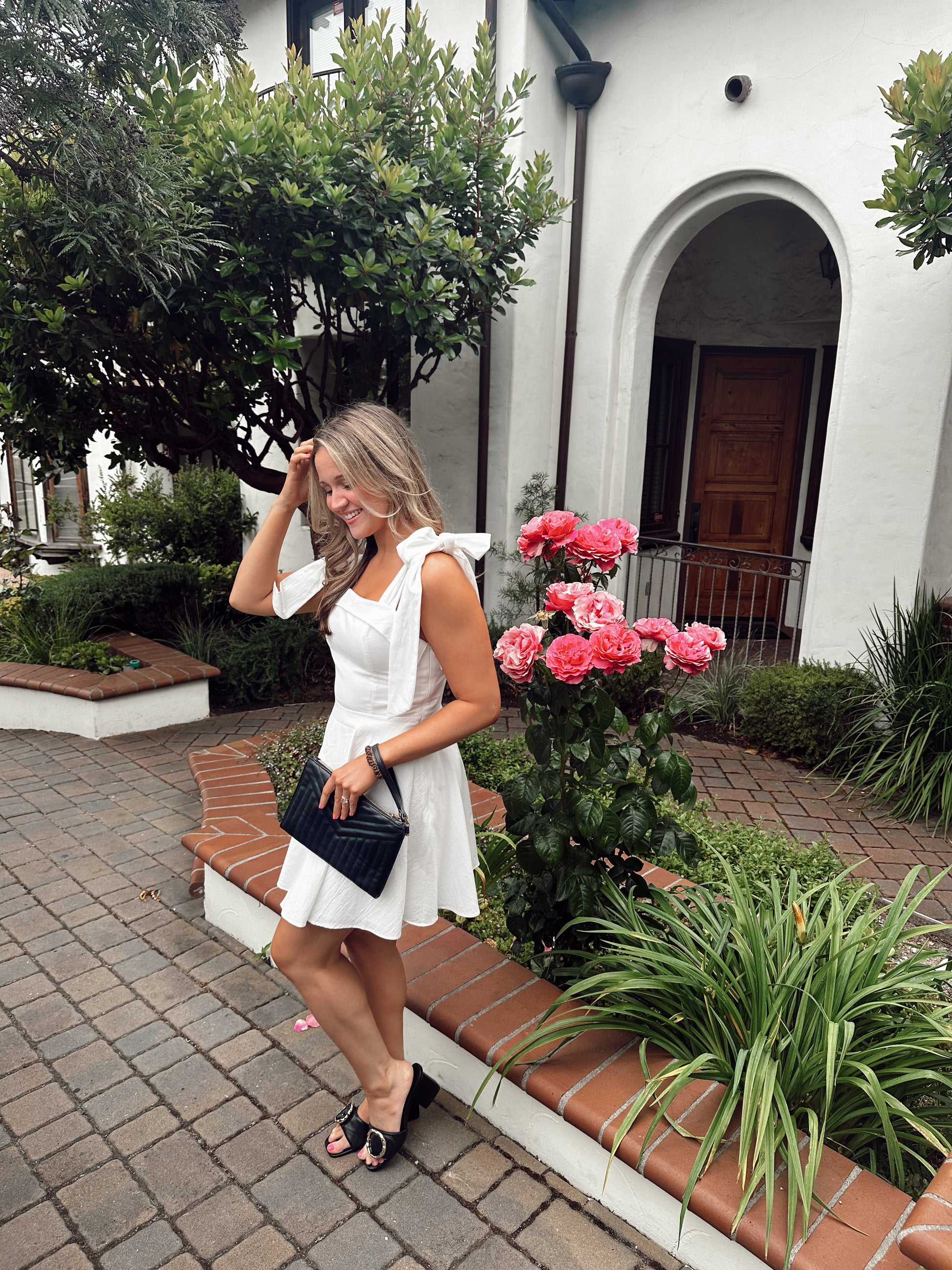 The Charlotte Dress features beautiful bow ties and a flattering fit, creating a classic and feminine silhouette. Experience confidence and beauty with the perfect fit of this must-have dress. Elevate your wardrobe with this essential piece!