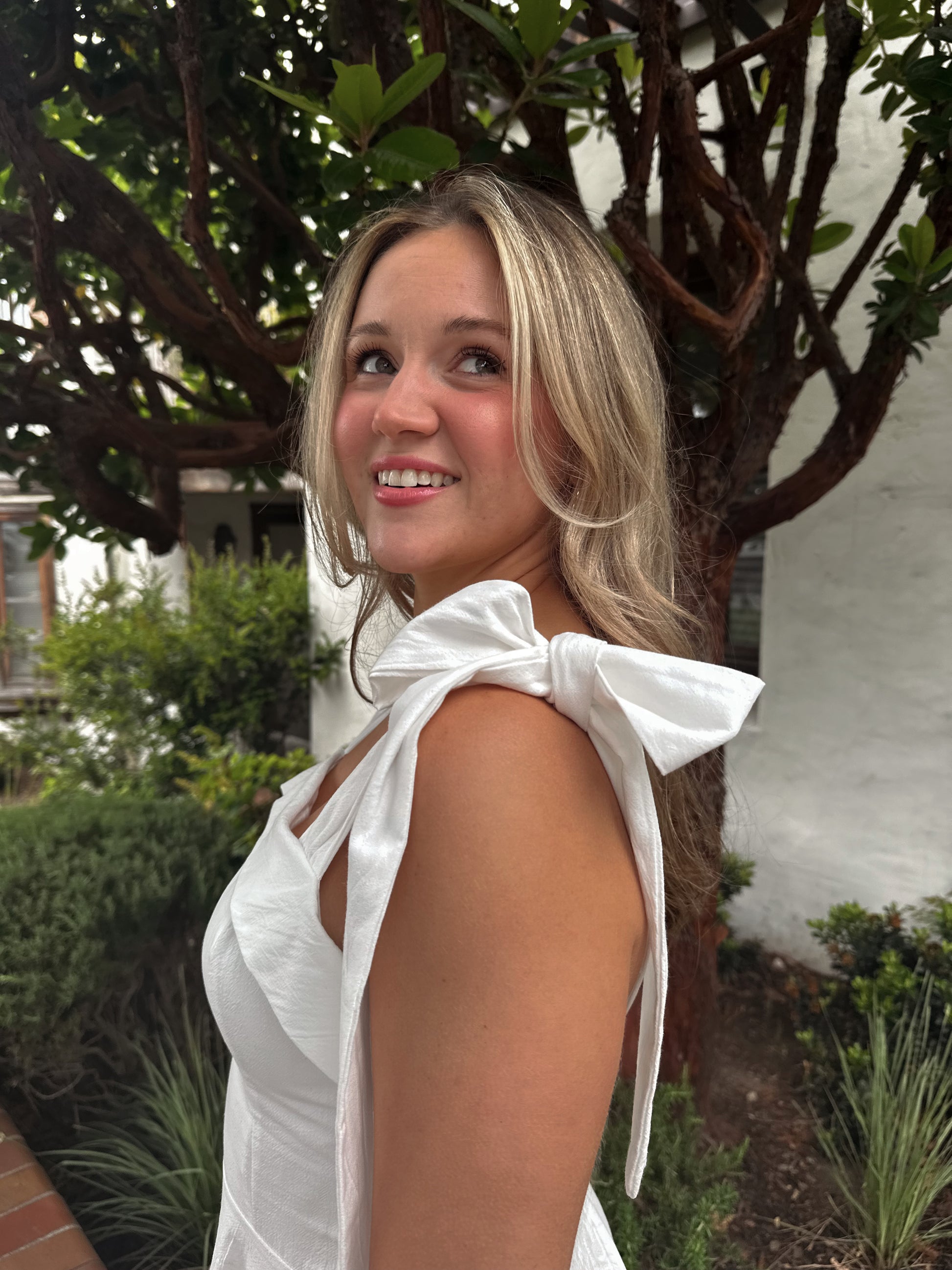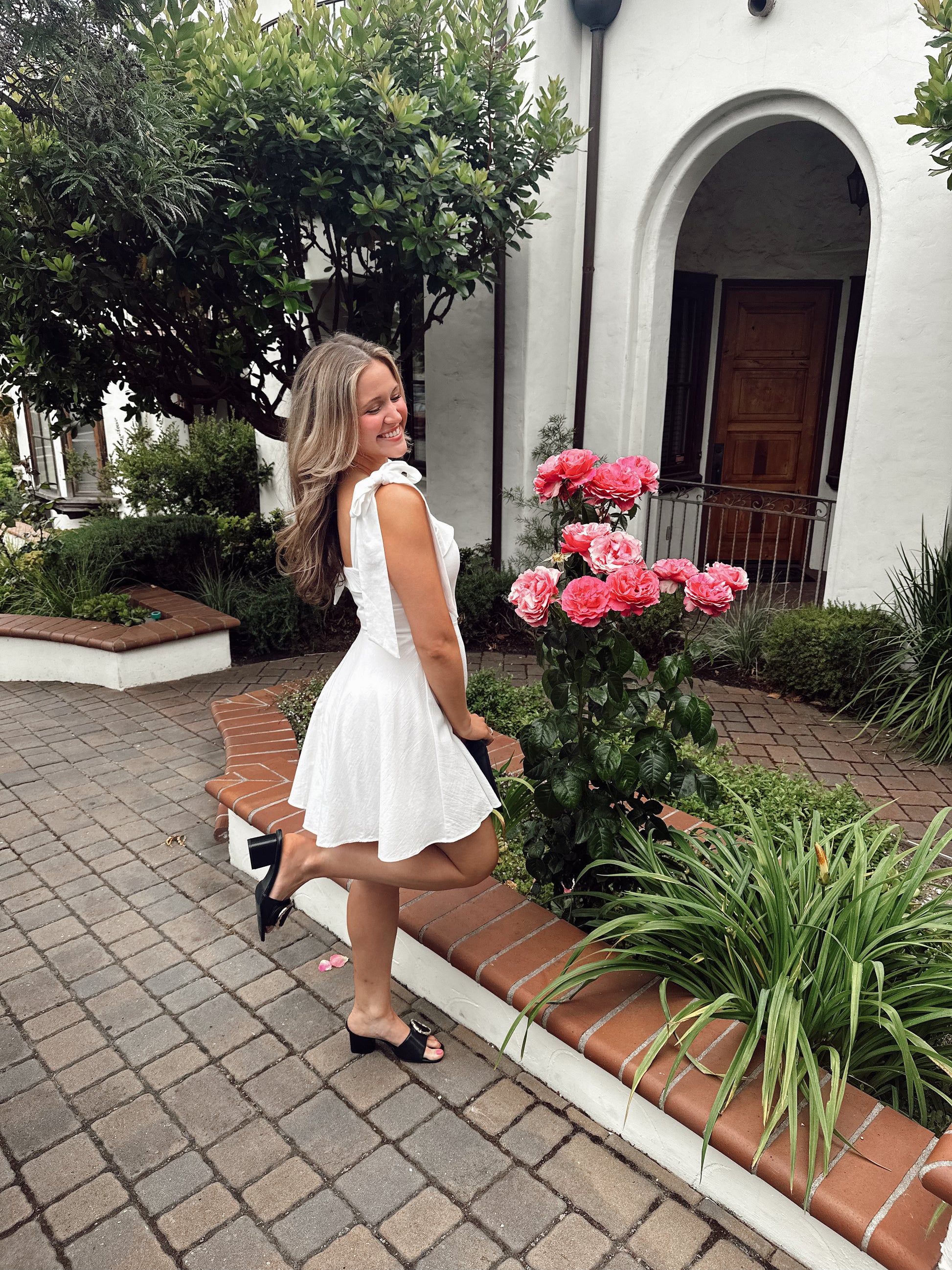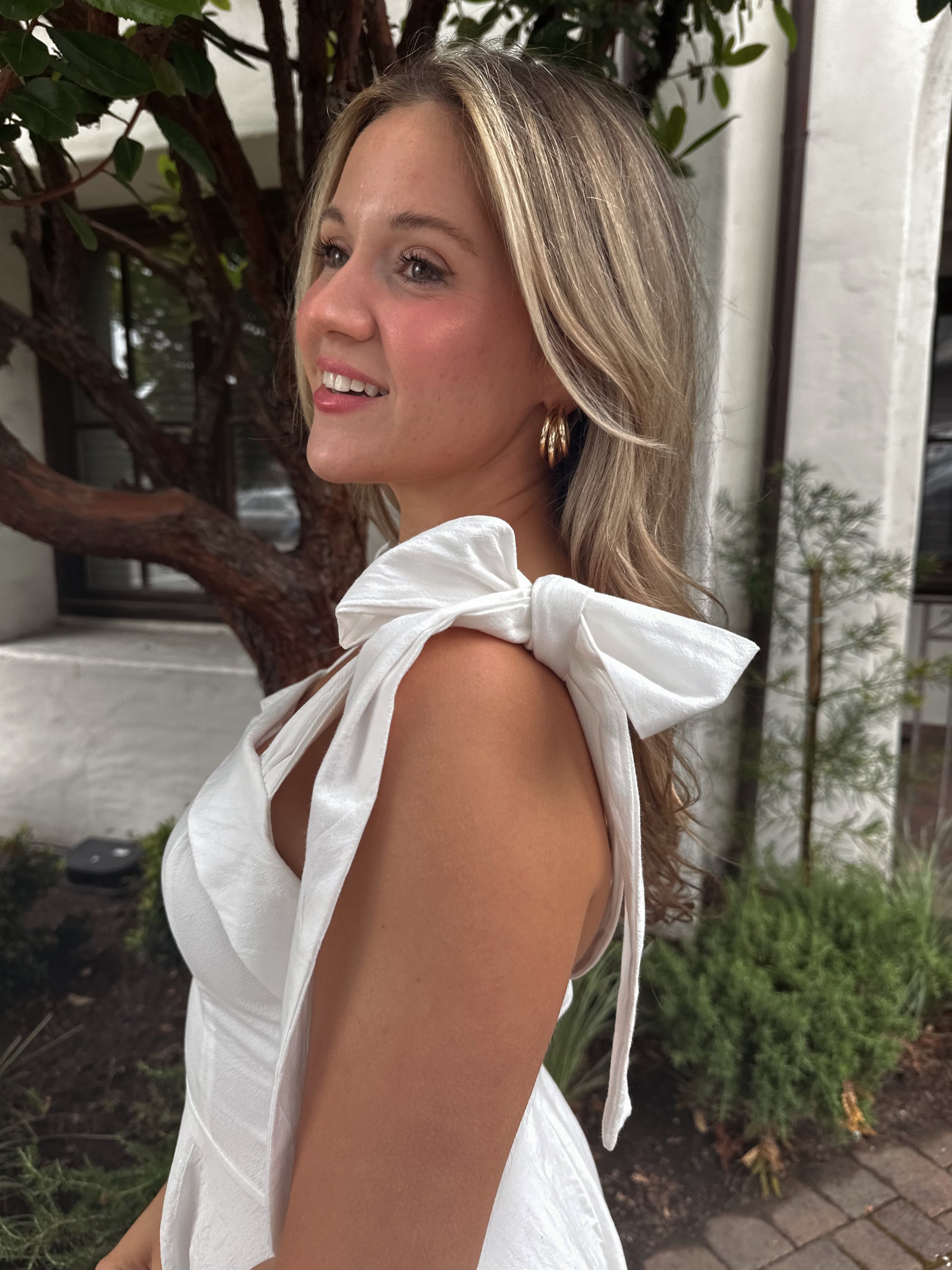 The Charlotte Dress features beautiful bow ties and a flattering fit, creating a classic and feminine silhouette. Experience confidence and beauty with the perfect fit of this must-have dress. Elevate your wardrobe with this essential piece!