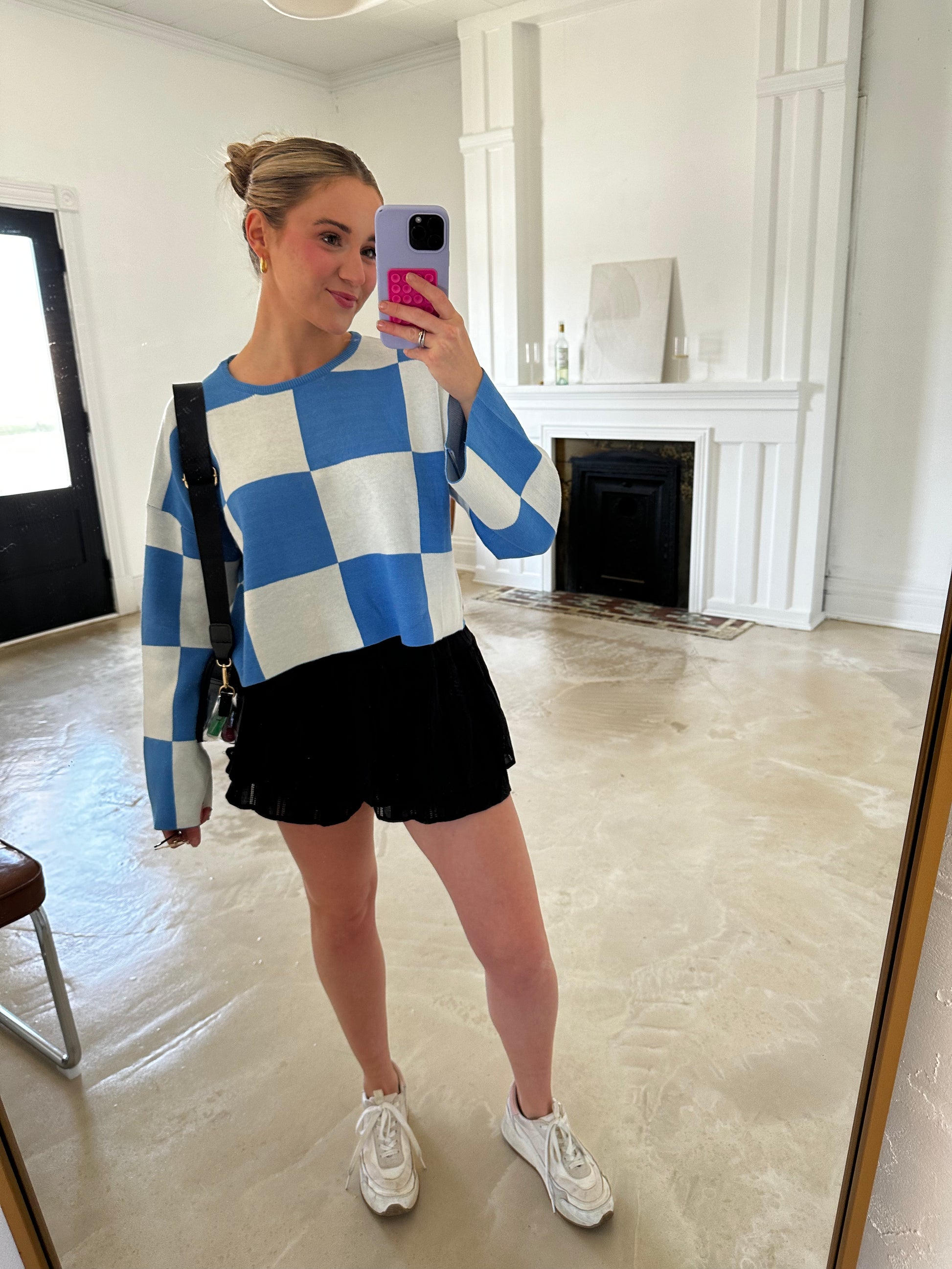 Introducing the Check, Please Lightweight Sweater! Elevate your style with its classic check print and lightweight fabric. Stay warm without feeling weighed down. Perfect for any occasion!