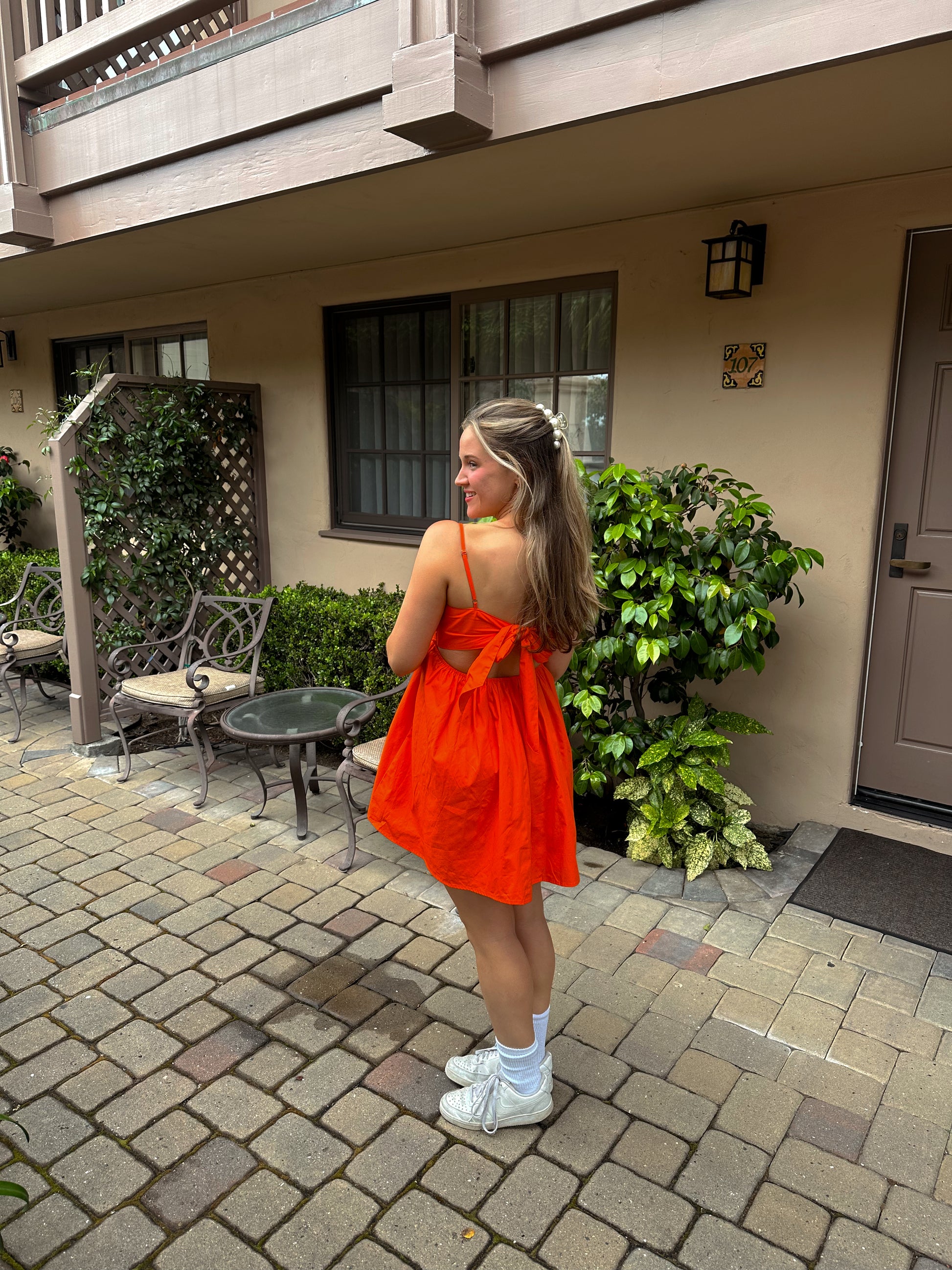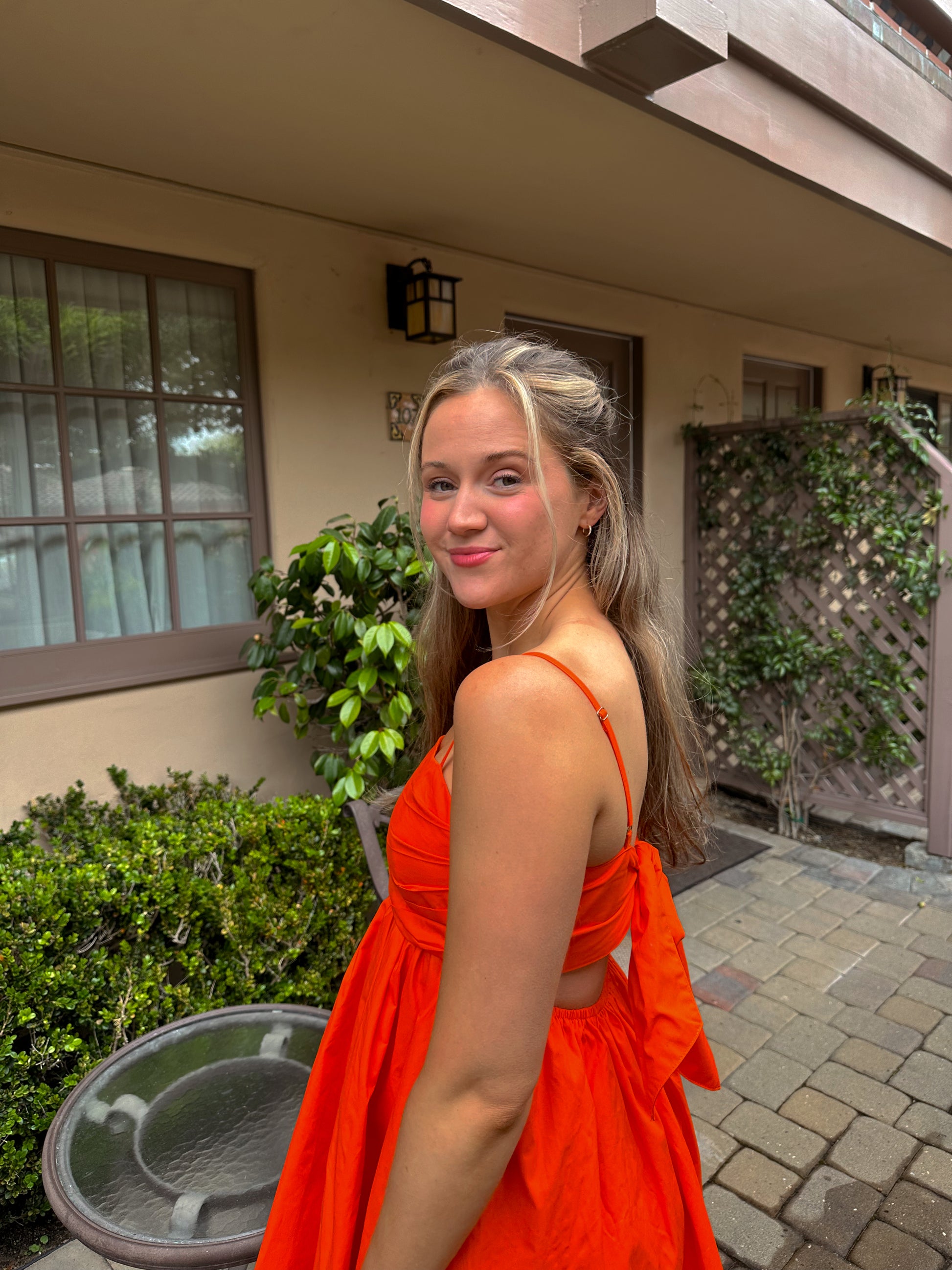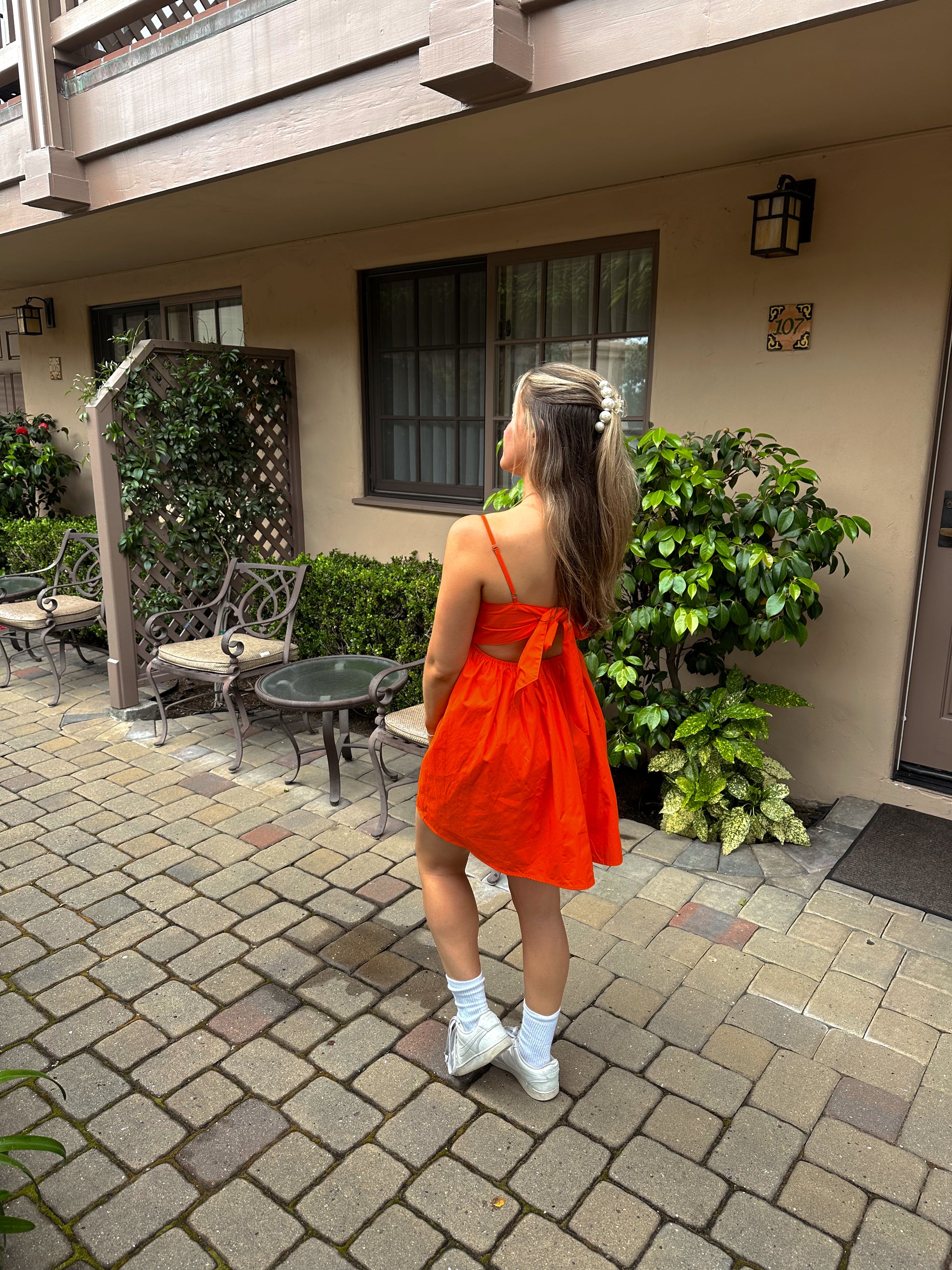 Indulge in the sweet and playful style of our Cherry Bomb Sundress! With a vibrant red hue, self-tie bow back, ruched bodice, and flattering fit, this dress is sure to turn heads. Perfect for any occasion, this dress is fun and flirty for summer into fall! Add it to your wardrobe today and make a statement everywhere you go!