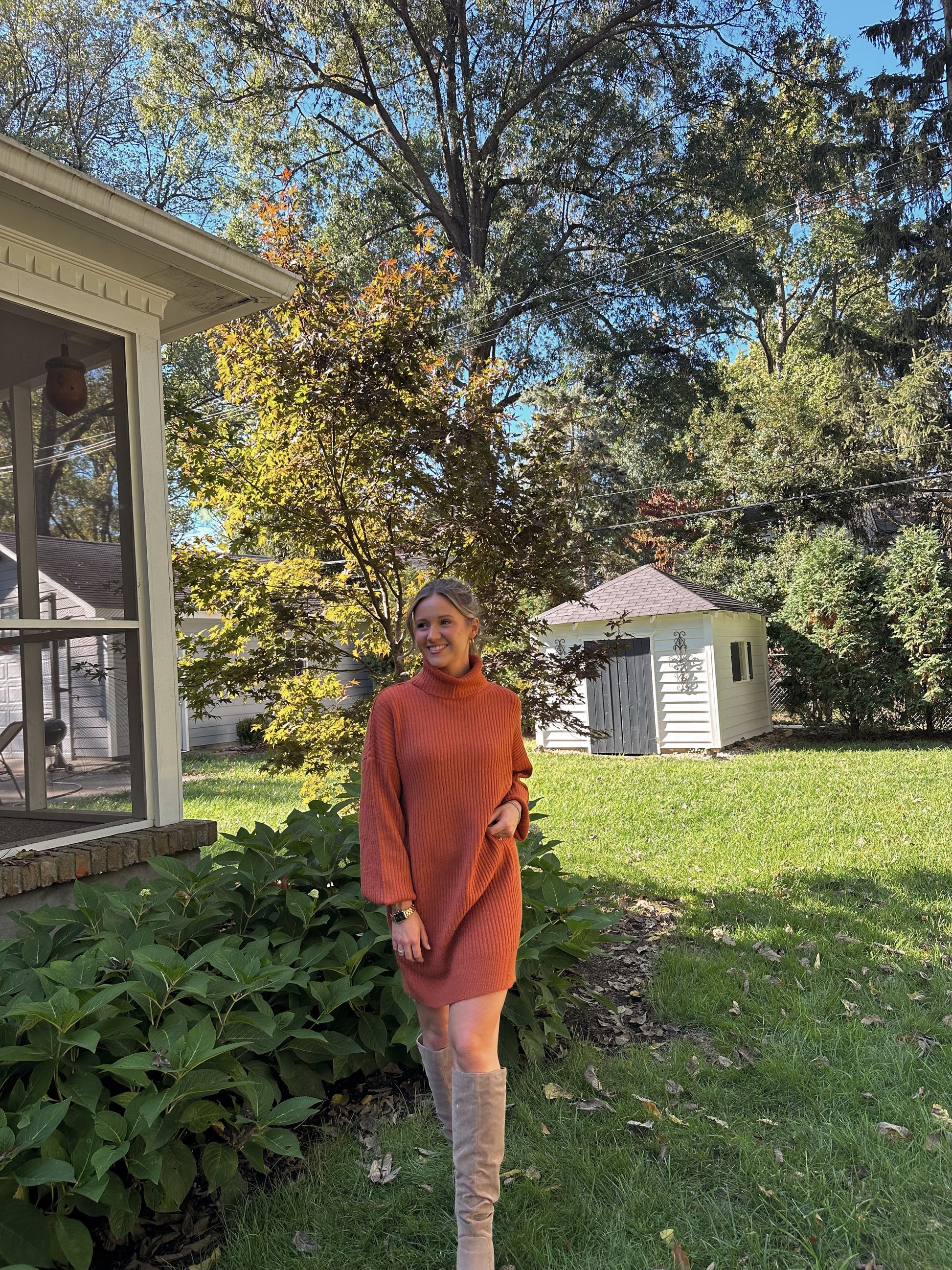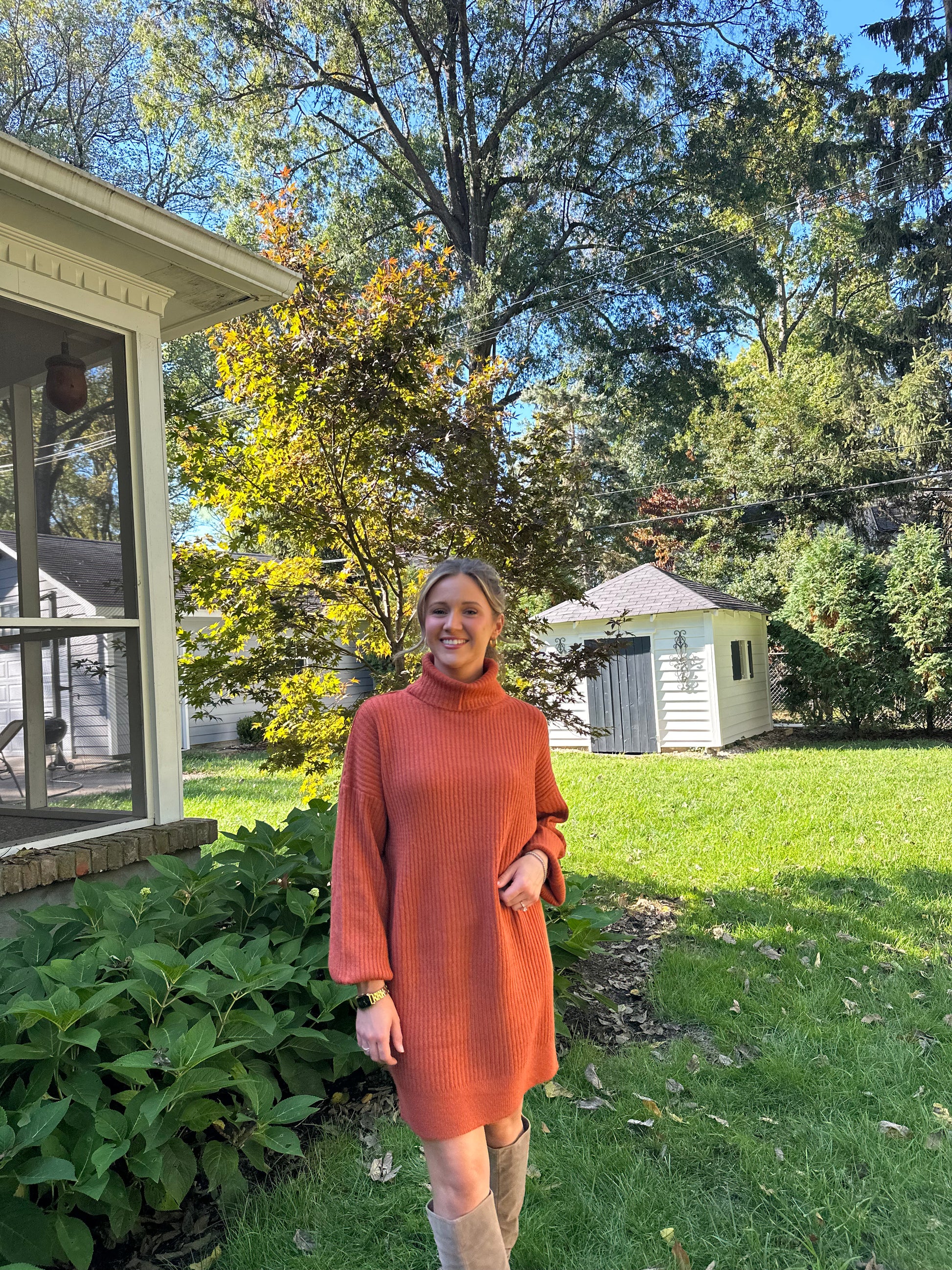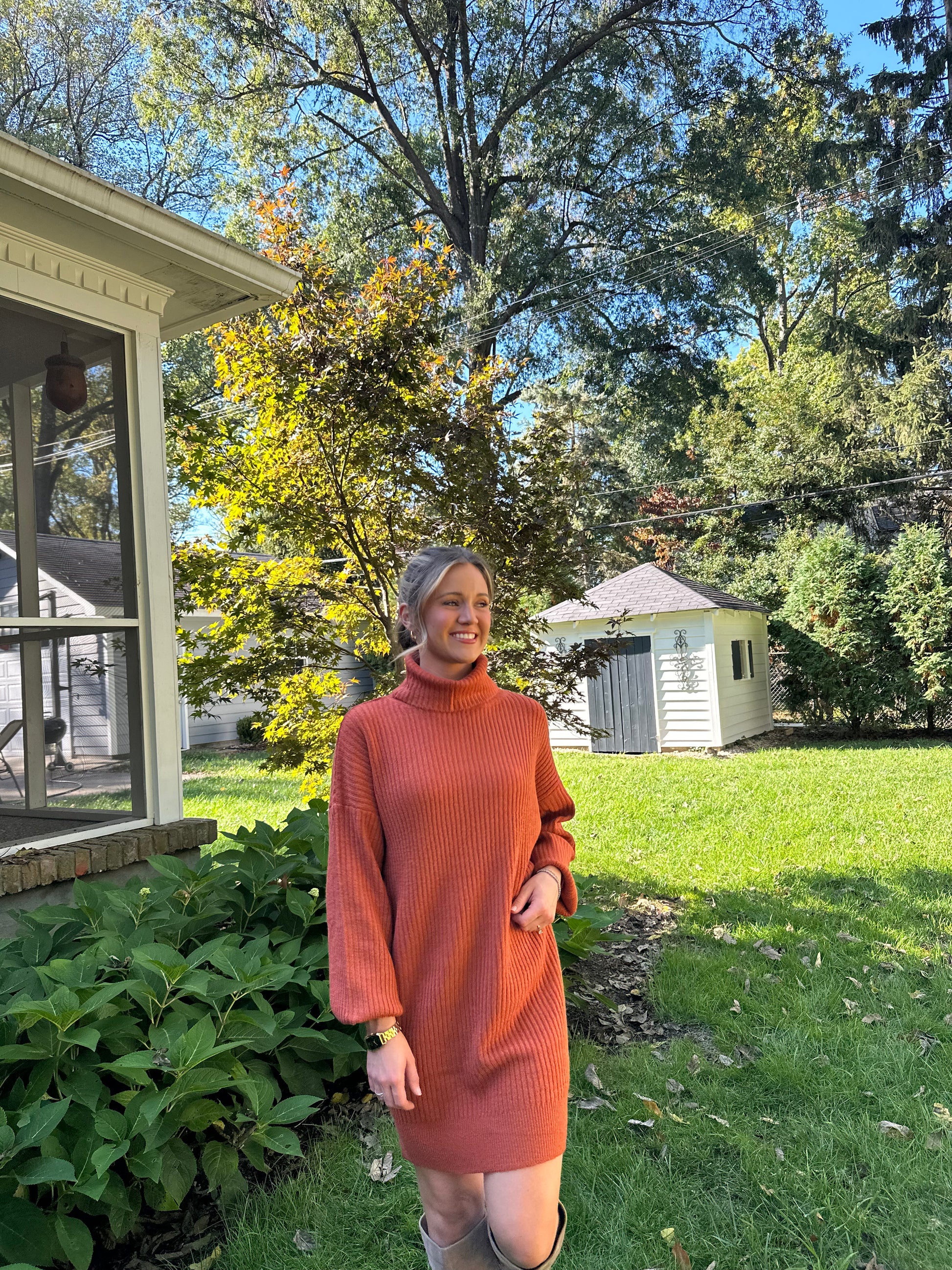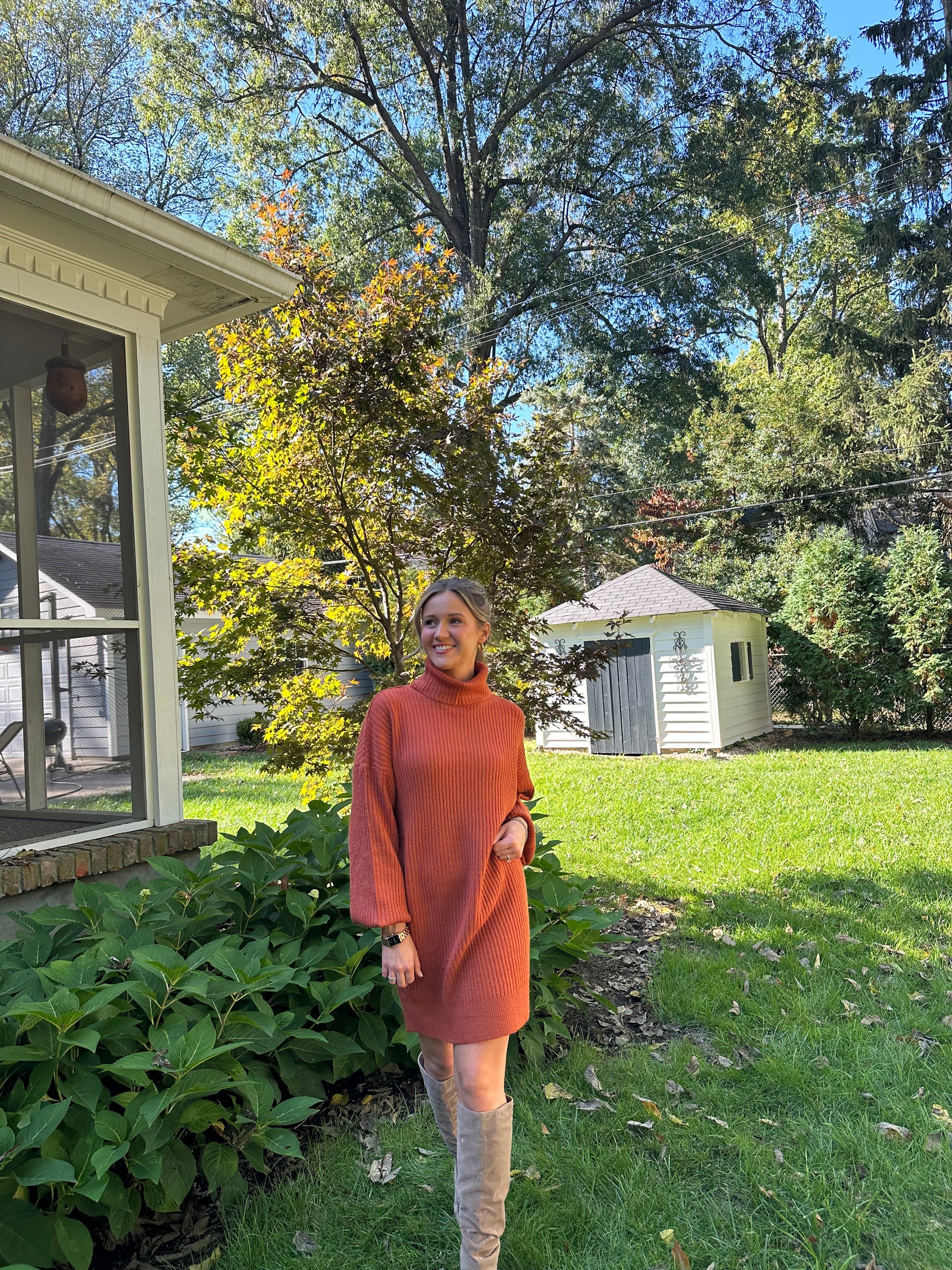 Stay warm and stylish in our Cider Sweater Dress! This chic dress features a relaxed fit, perfect for a cozy night in, or add a belt to cinch it in for a more fitted look. It's the perfect combination of comfort and style!