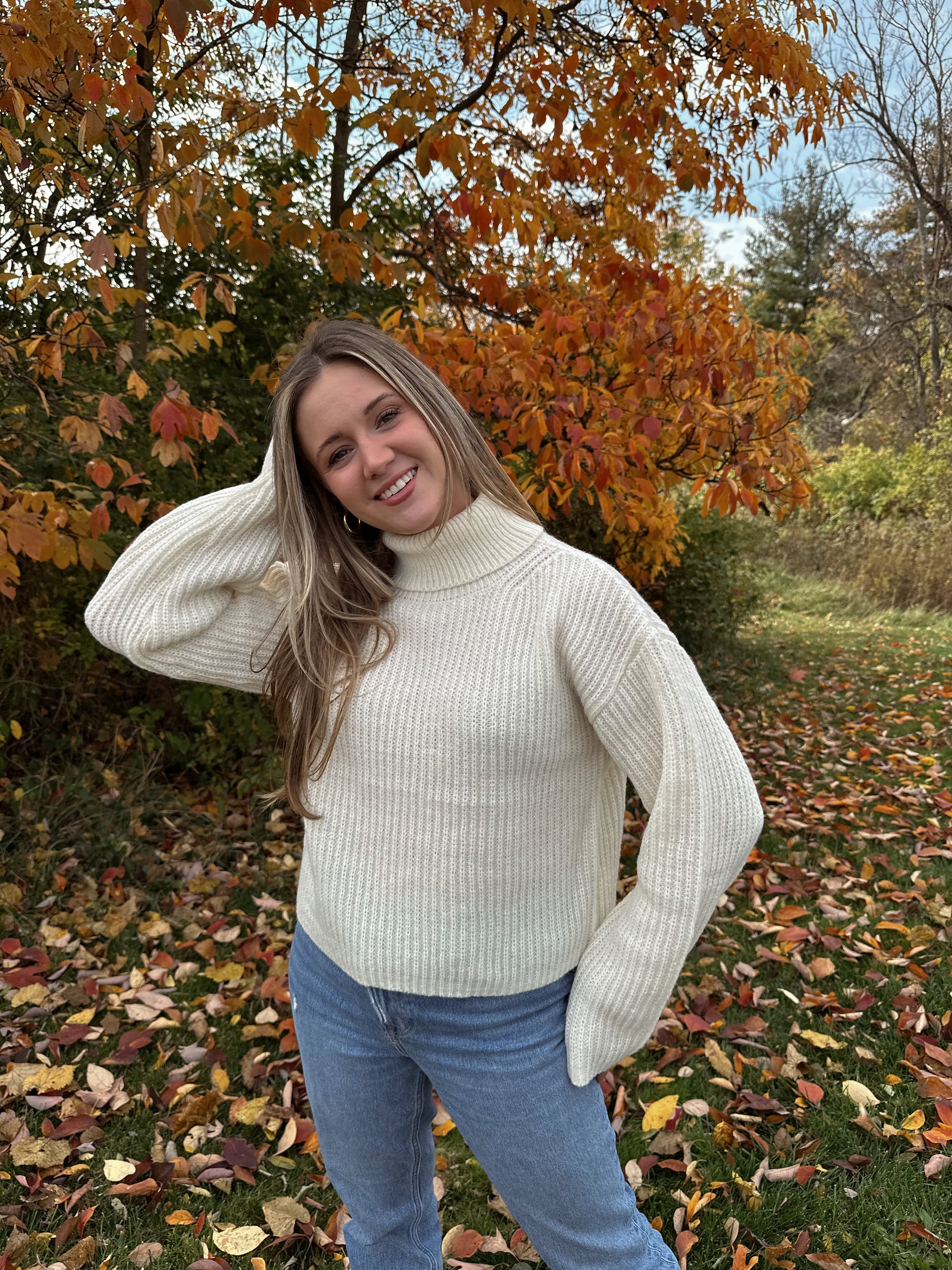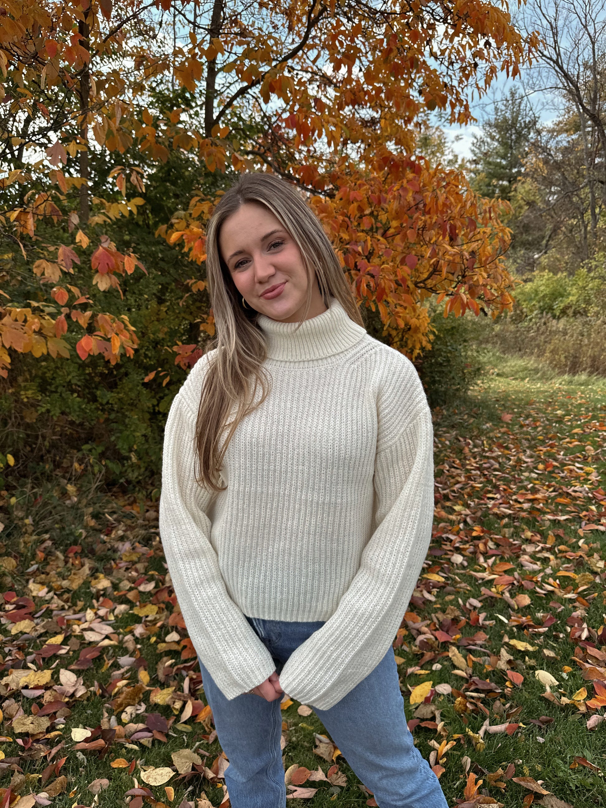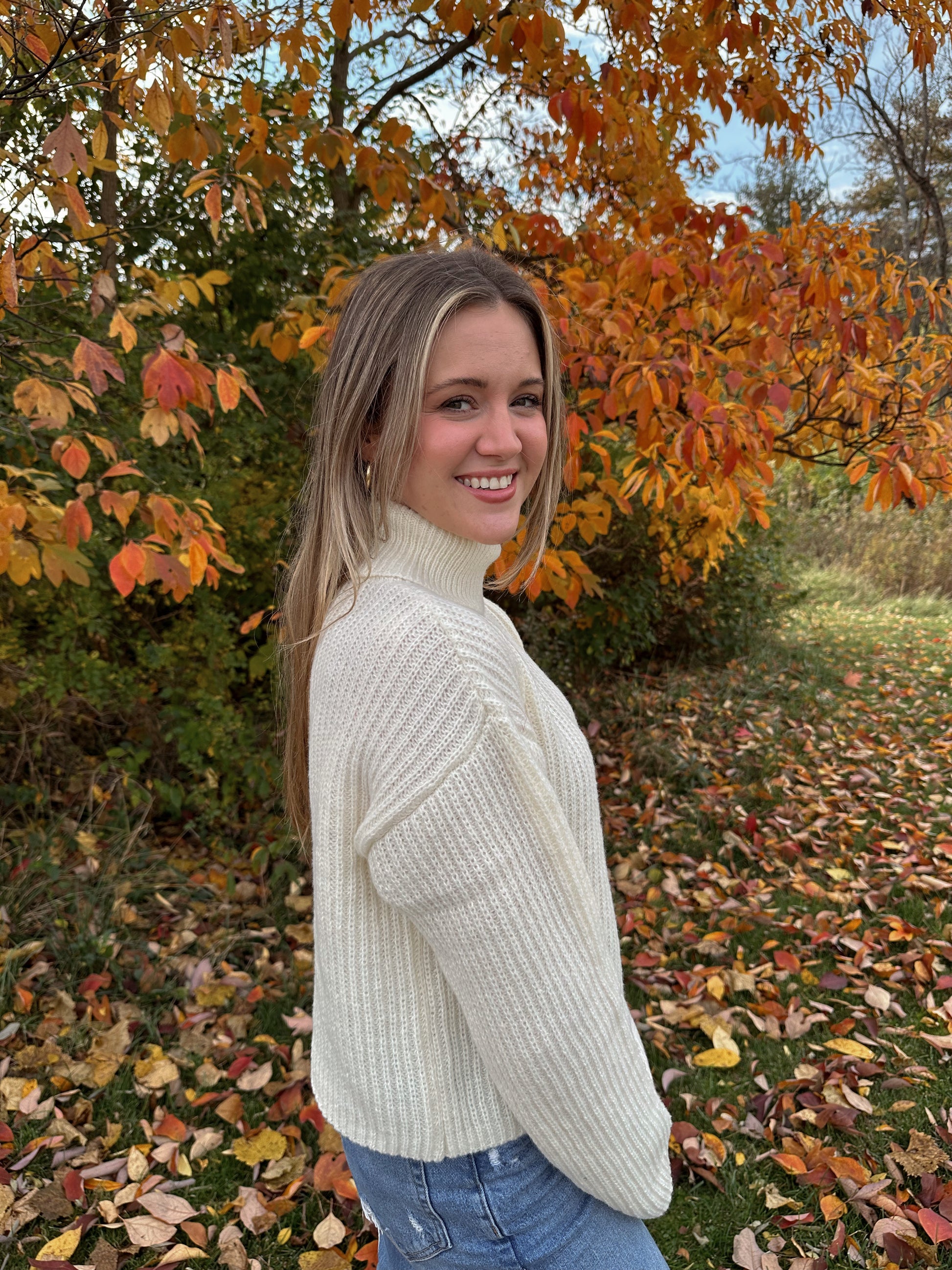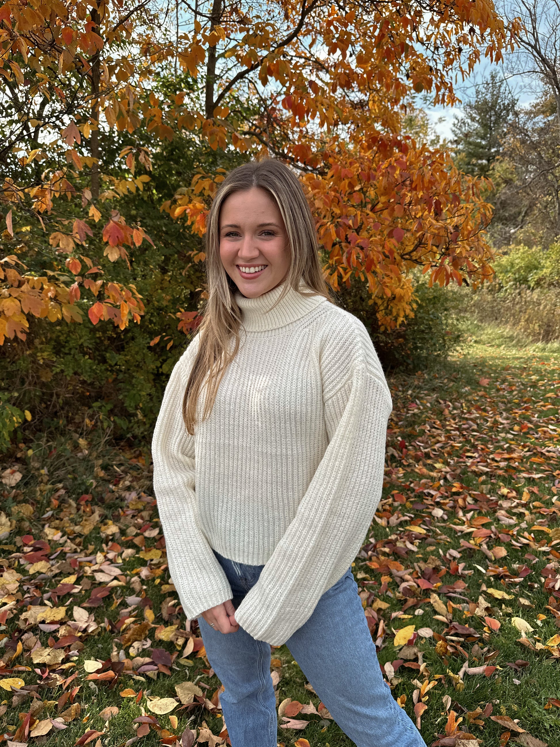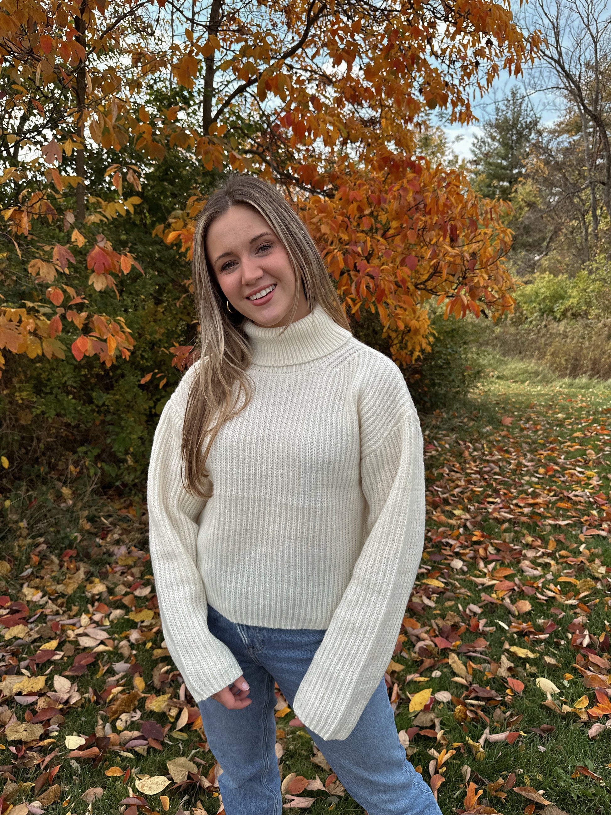 Stay cozy in style wearing the Fireside Semi-Crop Sweater! Featuring a turtleneck and perfect length that hits right at the hips, this ultra-soft sweater is ideal for any chilly night. Wrap yourself in warmth and stay stylish!