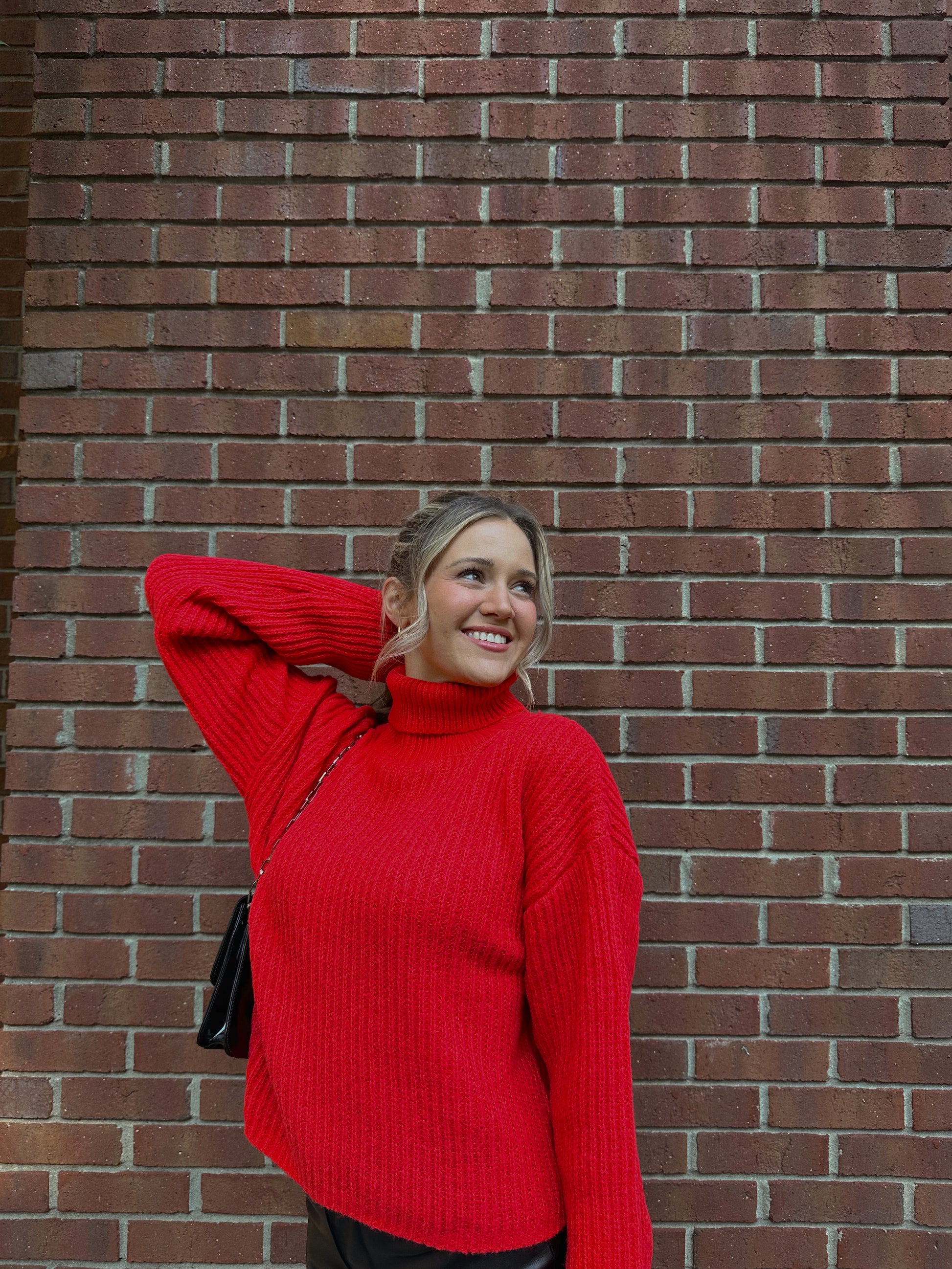 Stay cozy in style wearing the Fireside Semi-Crop Sweater! Featuring a turtleneck and perfect length that hits right at the hips, this ultra-soft sweater is ideal for any chilly night. Wrap yourself in warmth and stay stylish!