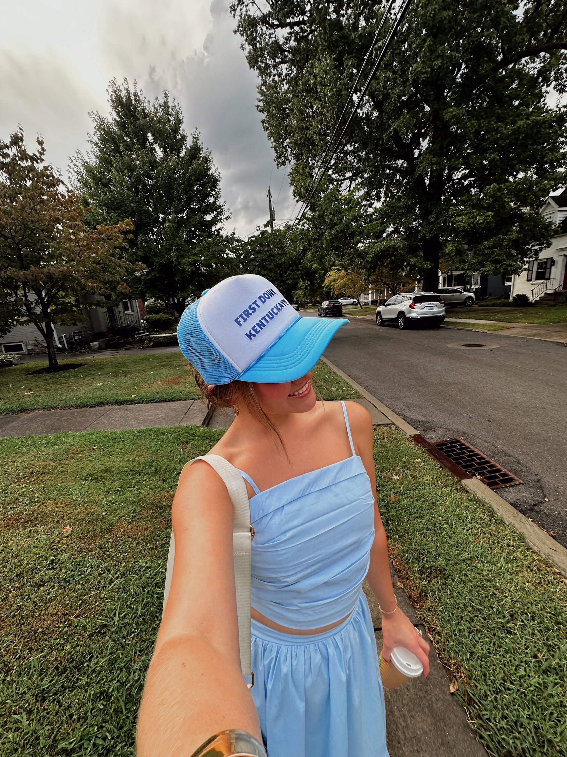 Get ready to celebrate football season with our First Down Trucker Hat! Featuring a classic Kentucky saying, this hat is perfect for any football fan. Show off your team spirit and support while looking stylish. Order now and be game day ready!