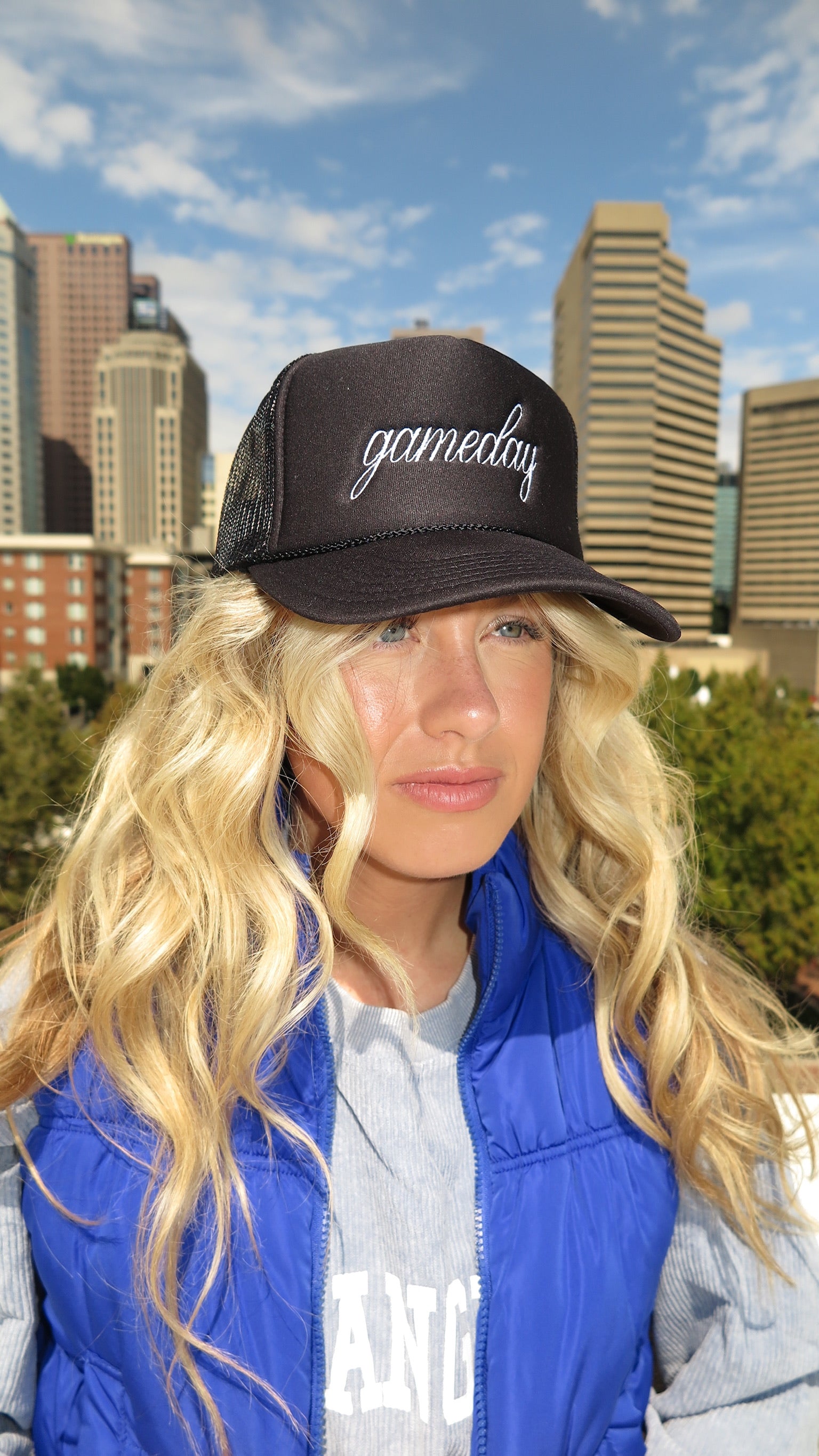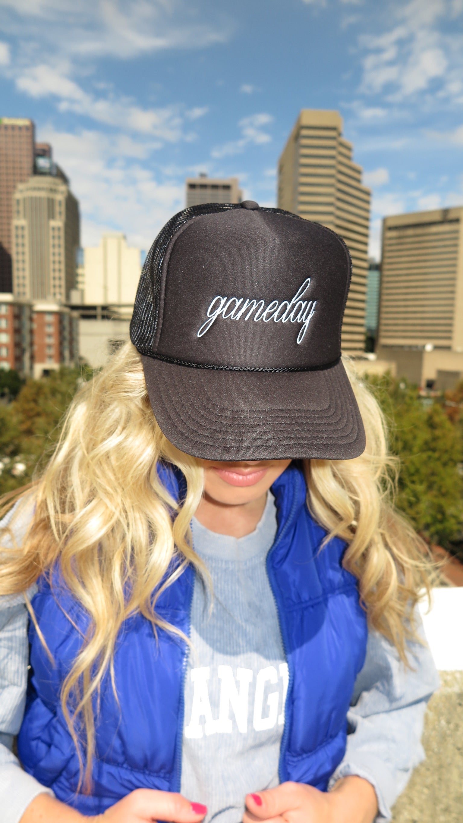 This classic Gameday Trucker Hat features an embroidered script design that brings a hint of team spirit to any wardrobe. Its lightweight construction and adjustable snapback closure make it a comfortable fit. Show your pride and step out looking great!