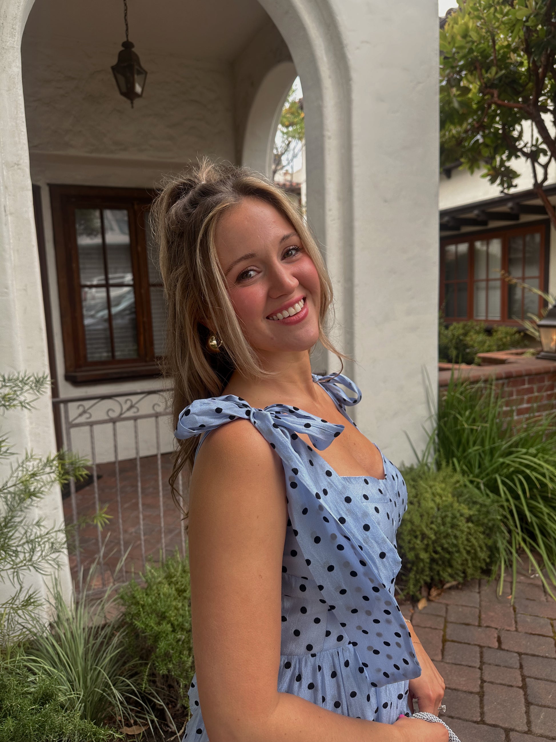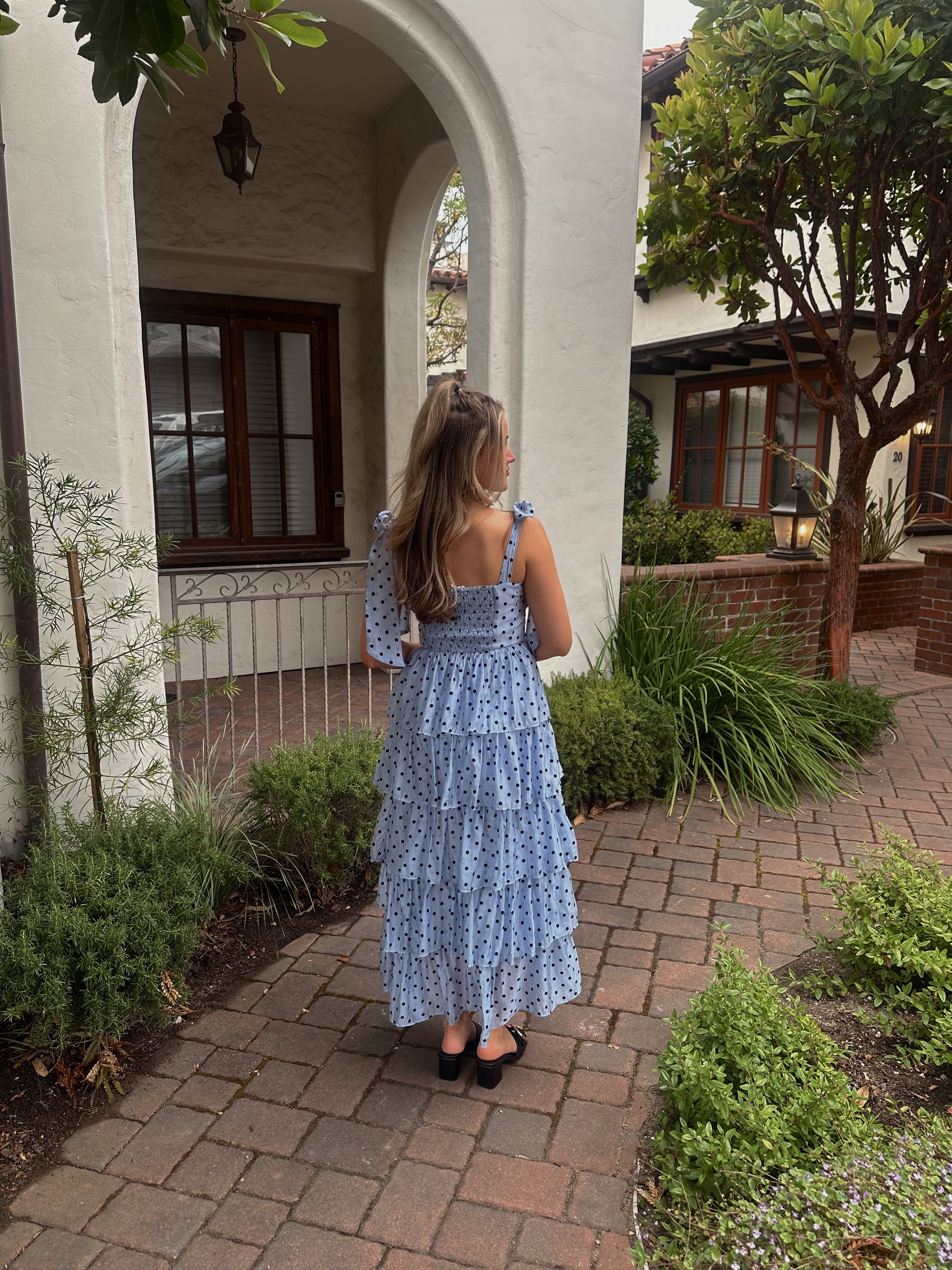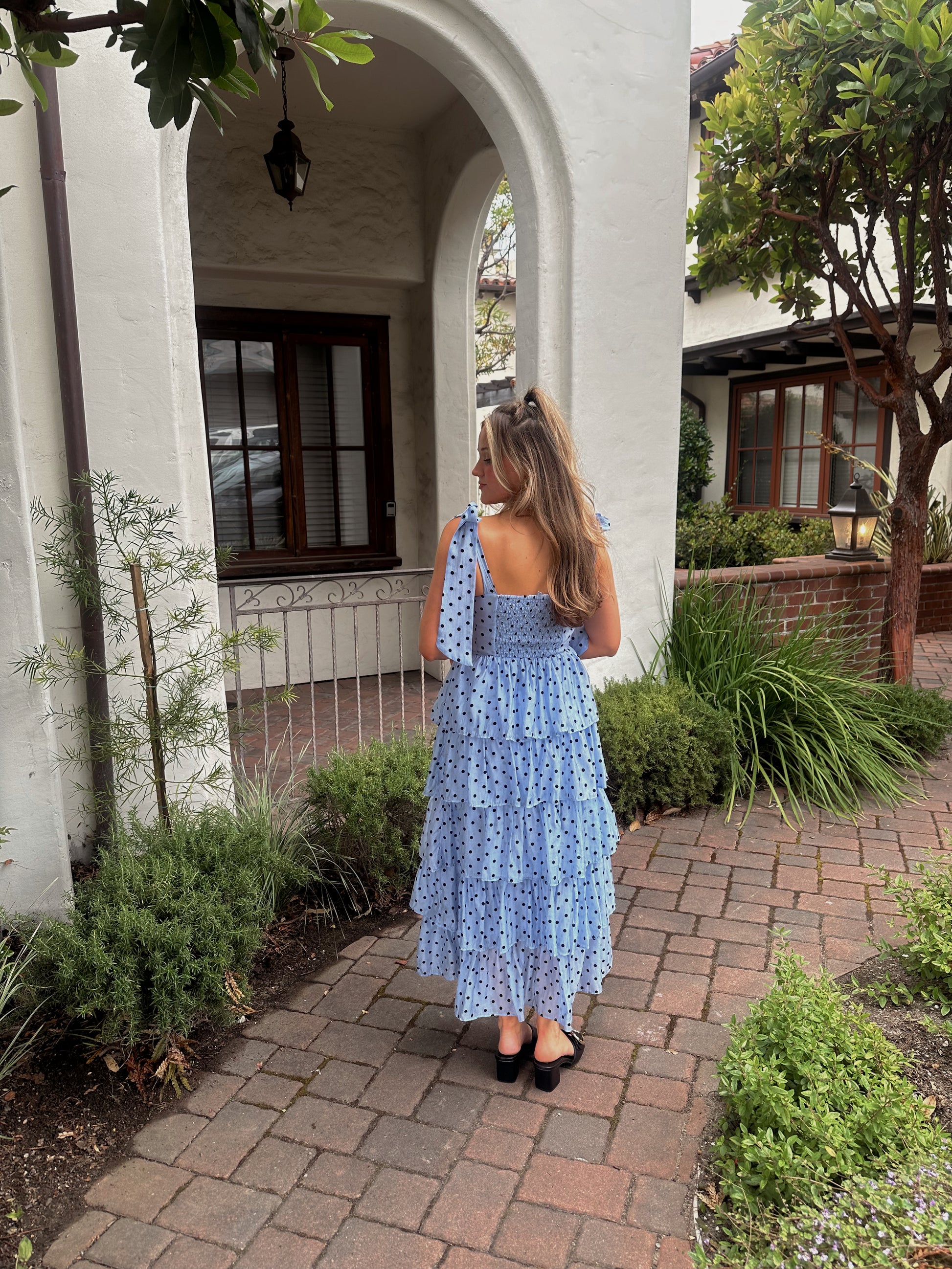 Radiate elegance and charm in our Glass Slipper Dress! Featuring a stunning baby blue hue and delicate polka dots, this dress is fit for a princess. The tiered skirt adds a touch of whimsy while the structured bustier highlights your curves. Make a statement at your next event with this enchanting dress.