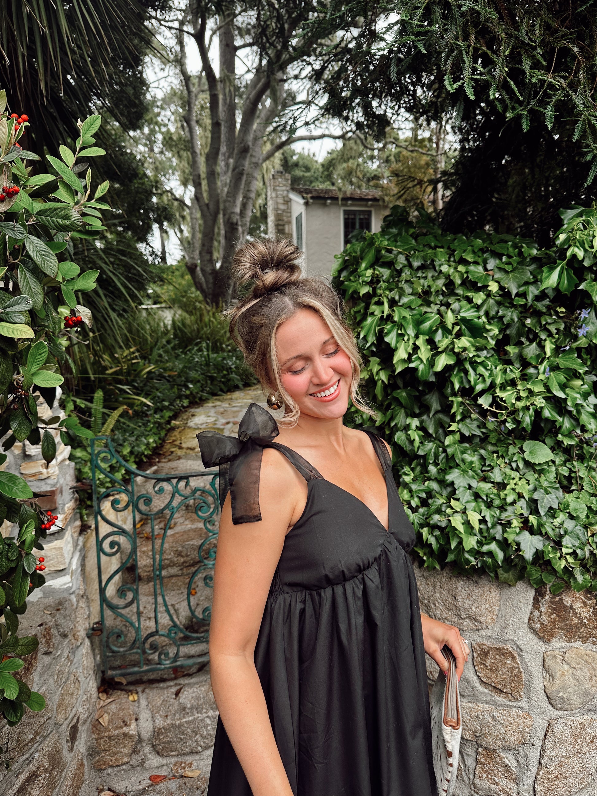 The Isabella Dress features delicate organza bow ties and a flattering babydoll style, creating a unique and feminine look. Its perfect fit will make you feel confident and beautiful. Elevate your wardrobe with this must-have dress!