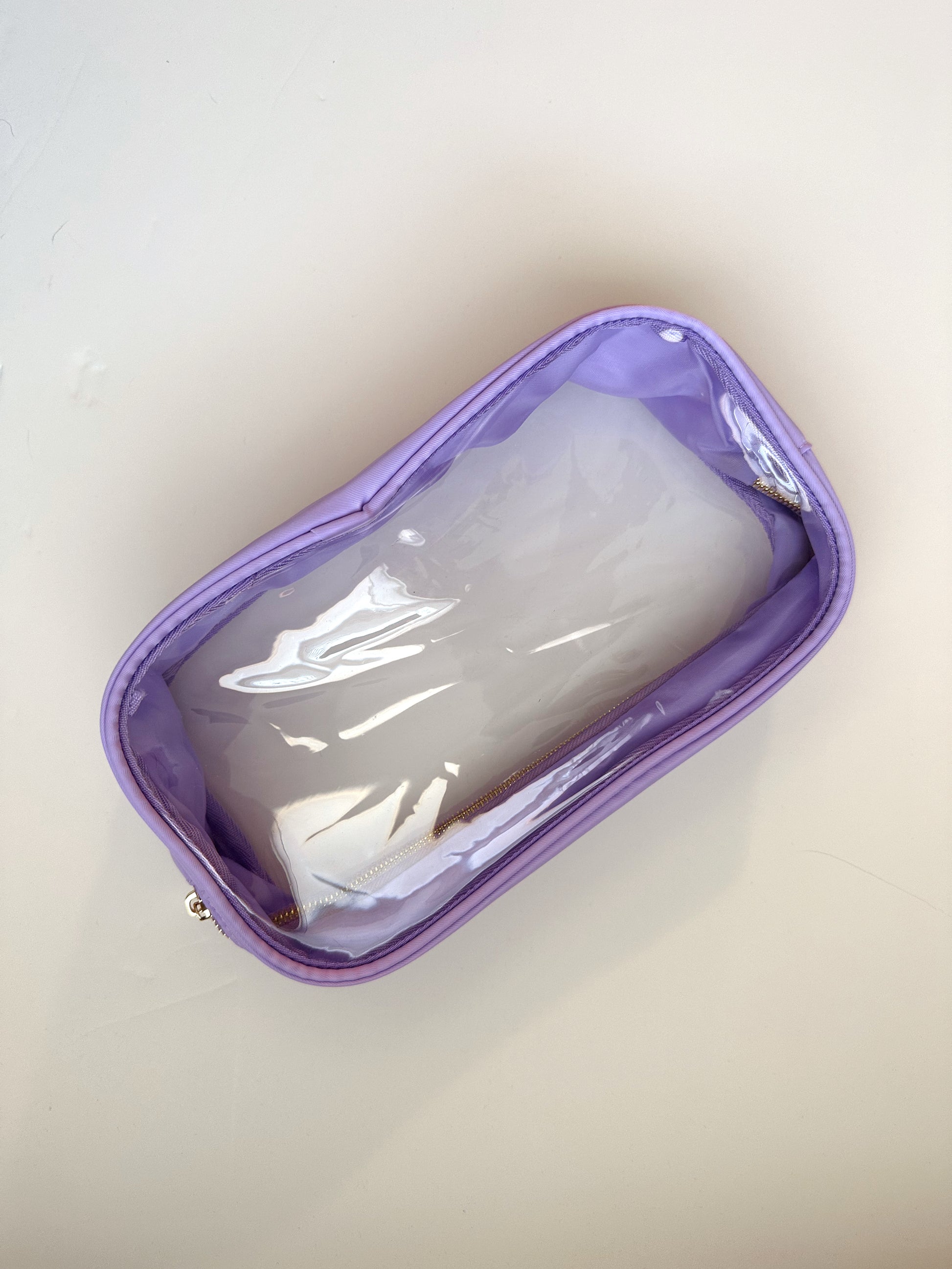 The pouch that packs a punch! This beautiful lavender nylon pouch offers a compact design that's perfect for easy storage and organization. Designed with double-sided clear PVC, you'll always know what you packed on the go. This pouch features a secure zip closure with beautiful gold hardware, designed to keep all your cosmetics safe and organized while standing out in your tote or on your beauty cart at home.