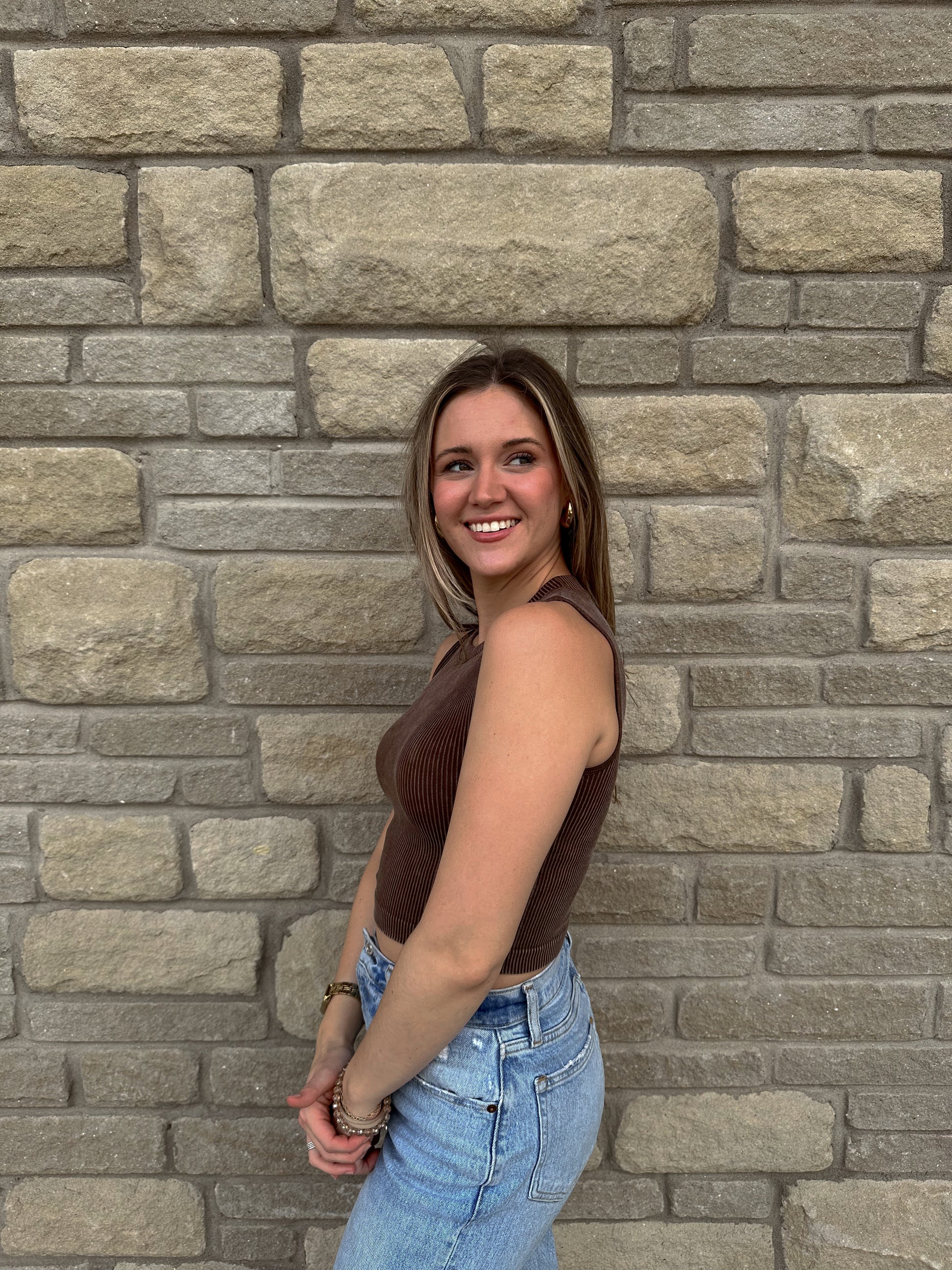 Make a statement with the Essential Seamless Tank! This tank, with its soft brown color and silky smooth fabric, is perfect for wearing alone or layered. Its easy basic style makes it easy to dress up or down, making it the perfect wardrobe staple for any occasion.