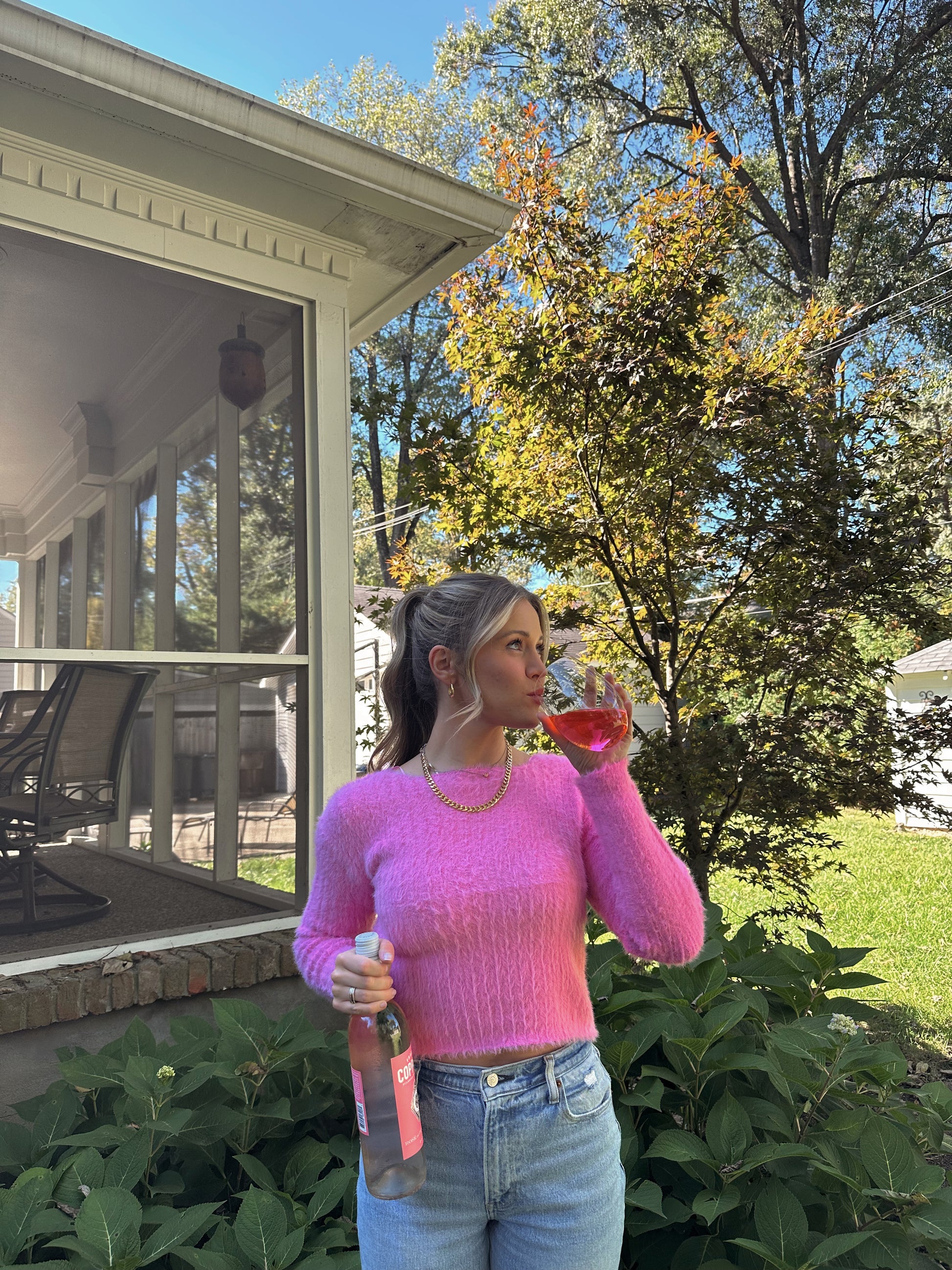 This New Romantics Sweater is a fabulously chic way to brighten up any wardrobe. The semi-crop length and eyelash fuzzy material make this the perfect hybrid of comfort and style.