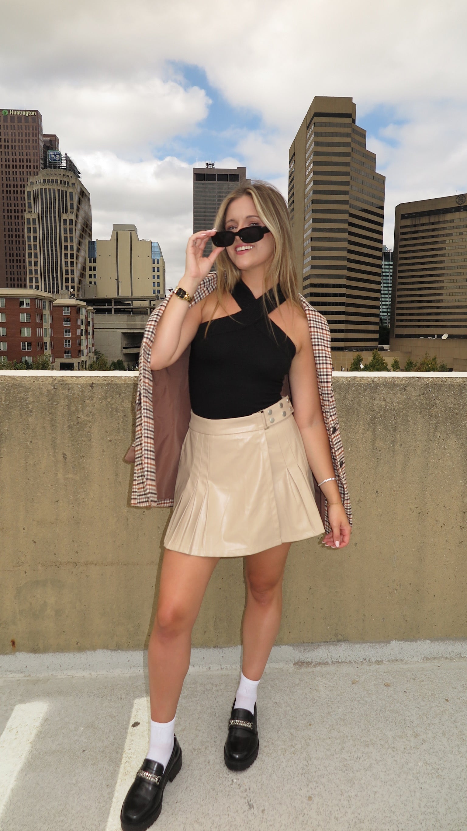Elevate your wardrobe with the edgy Serena Vegan Leather Pleated Skirt. Crafted from supple vegan leather, this taupe skirt packs a stylish punch with its pleated texture and figure-flattering silhouette. Feel confident and look fierce, like Ms. Van Der Woodsen would!