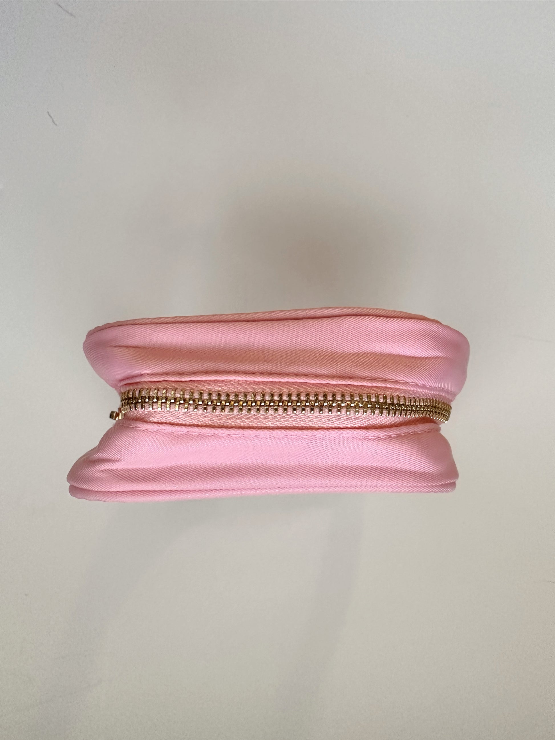 The pouch that packs a punch! This beautiful lavender nylon pouch offers a compact design that's perfect for easy storage and organization. Designed with double-sided clear PVC, you'll always know what you packed on the go. This pouch features a secure zip closure with beautiful gold hardware, designed to keep all your cosmetics safe and organized while standing out in your tote or on your beauty cart at home.