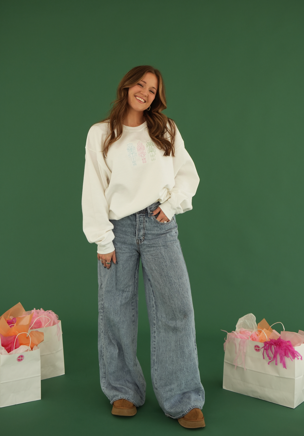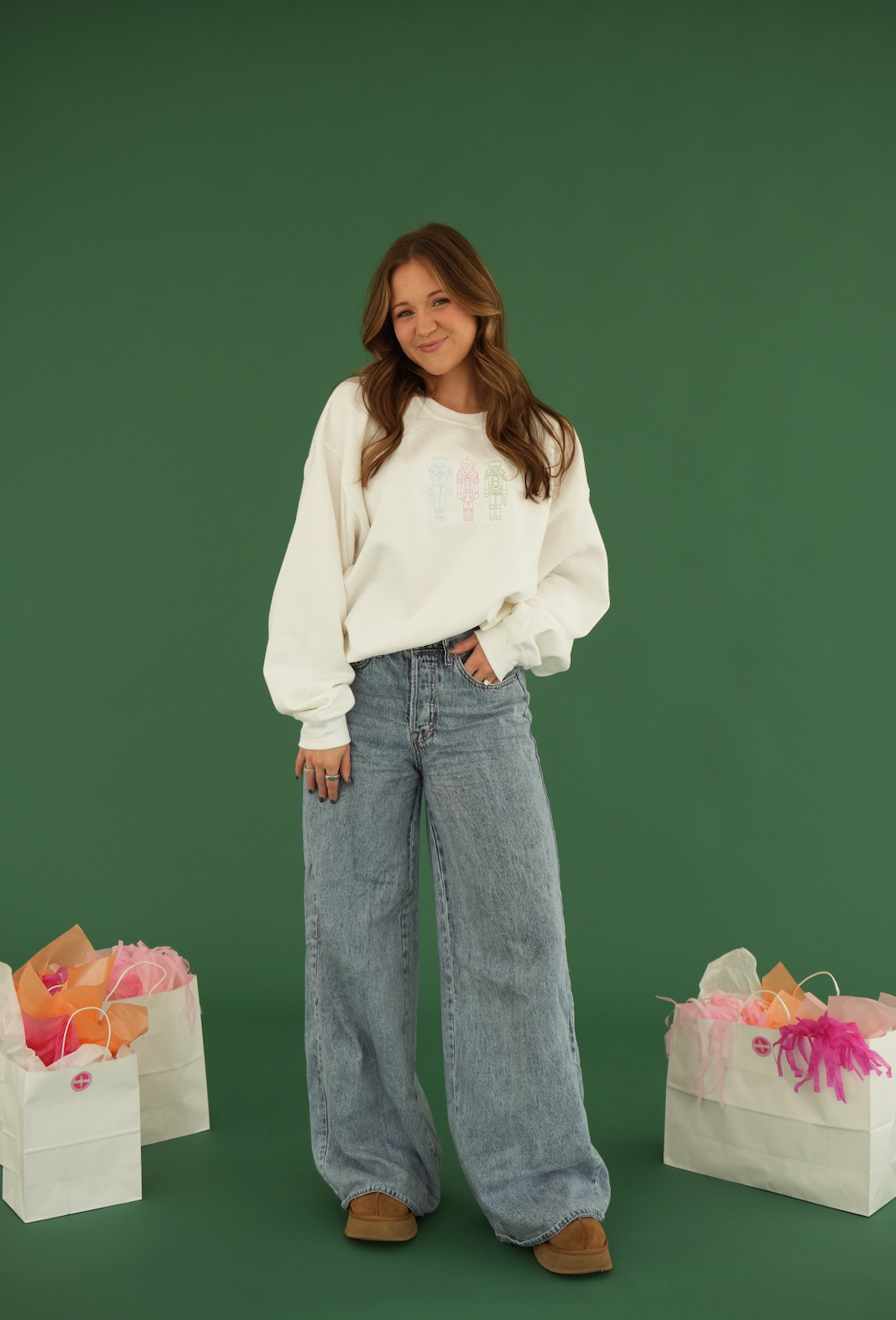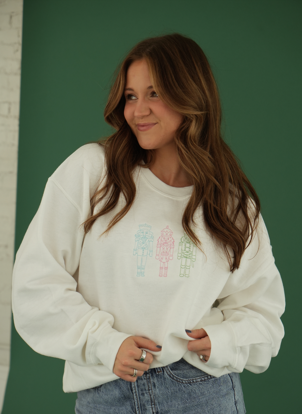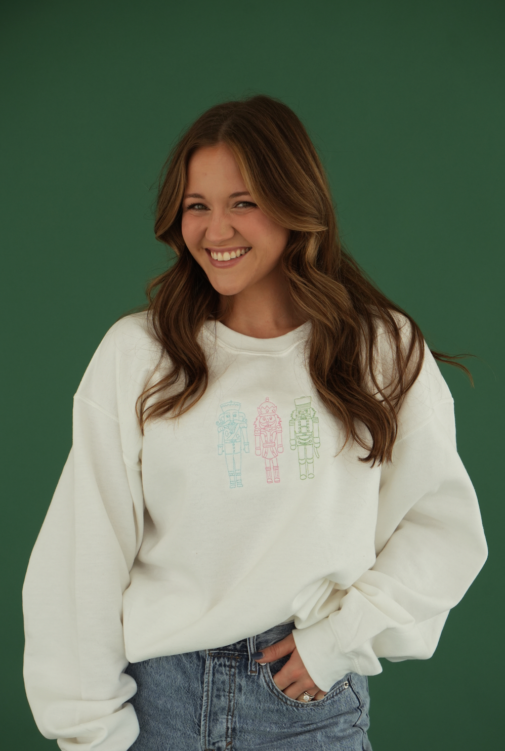 Experience the bold and timeless style of our Tricolor Nutcracker Sweatshirt! The vibrant hues of pink, green, and blue create a classic and eye-catching look that is sure to make a statement. Stay warm and fashionable this season with this must-have piece in your wardrobe.