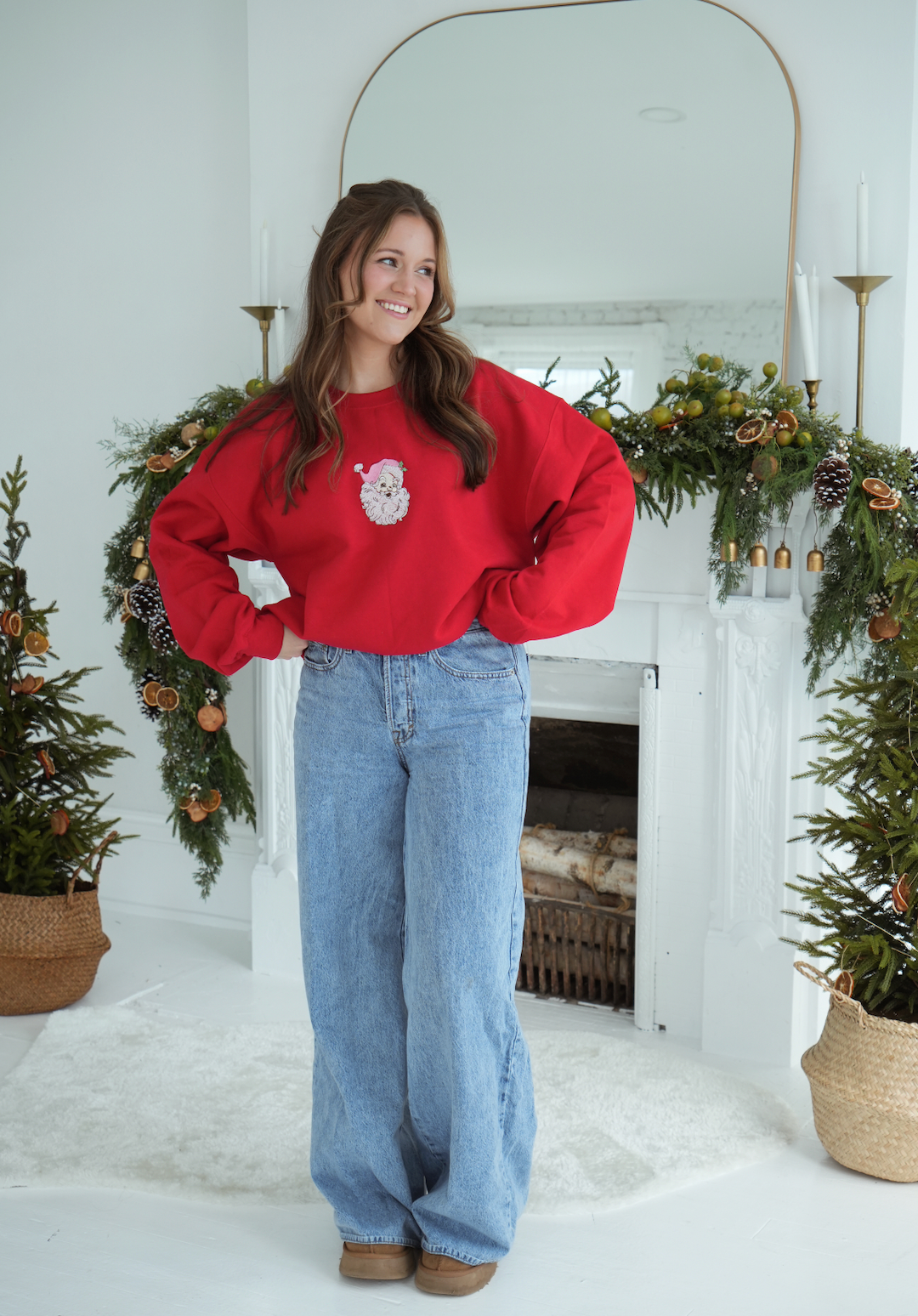 Experience timeless style with our Vintage Santa Sweatshirt. The classic look and bold red color will add a festive touch to any outfit. Perfect for holiday gatherings or as a cozy layer during chilly winter days. Spread joy and warmth with this vintage-inspired sweatshirt.