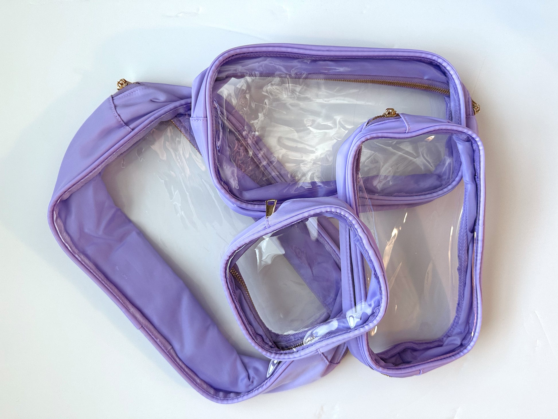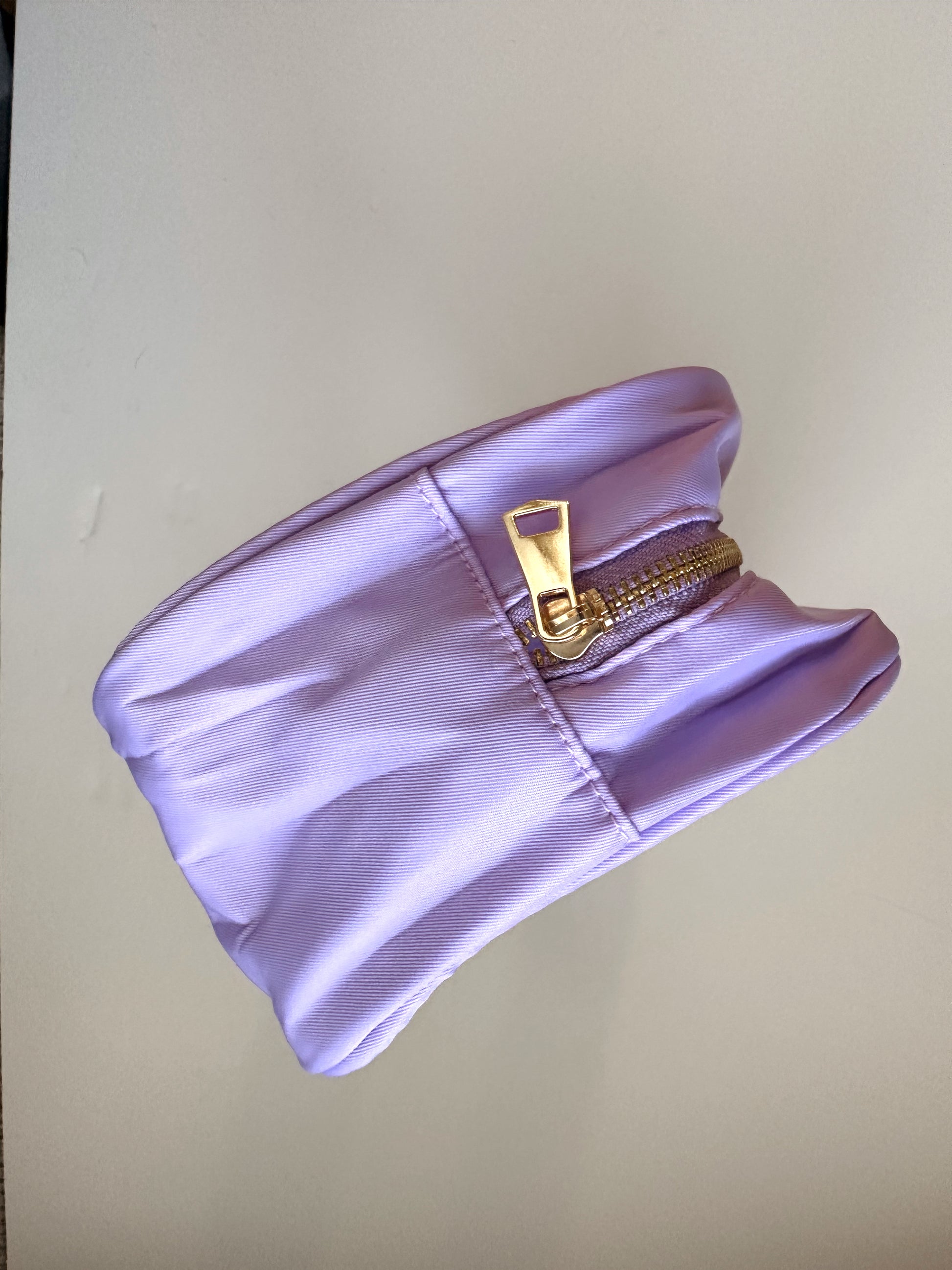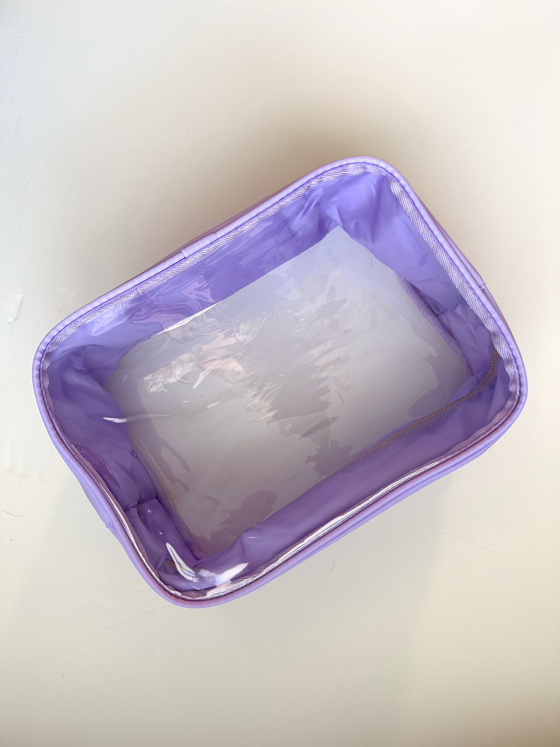 The pouch that packs a punch! This beautiful lavender nylon pouch offers a compact design that's perfect for easy storage and organization. Designed with double-sided clear PVC, you'll always know what you packed on the go. This pouch features a secure zip closure with beautiful gold hardware, designed to keep all your cosmetics safe and organized while standing out in your tote or on your beauty cart at home.